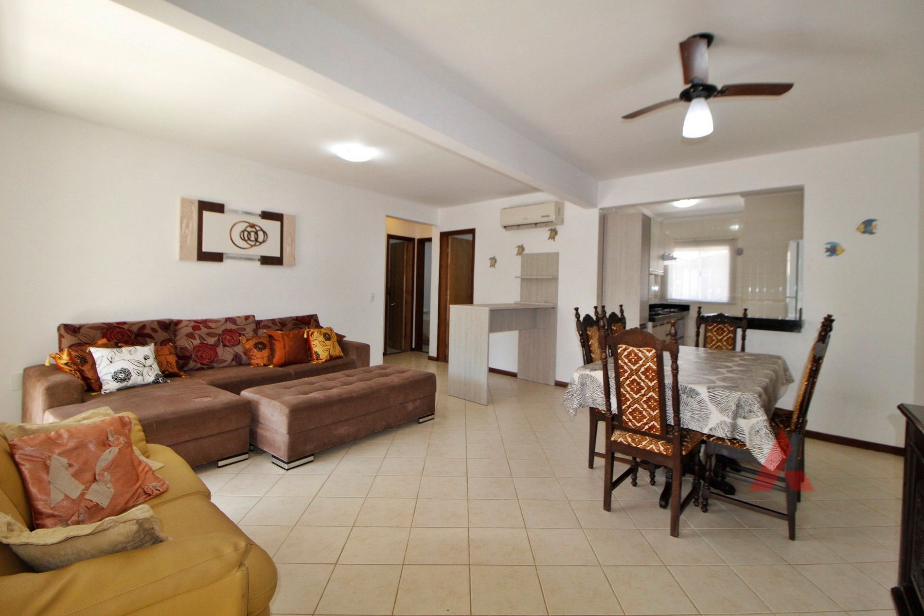 01 banheiro social, sala e jantar e estar conjugadas com Tv e ar condicionado,