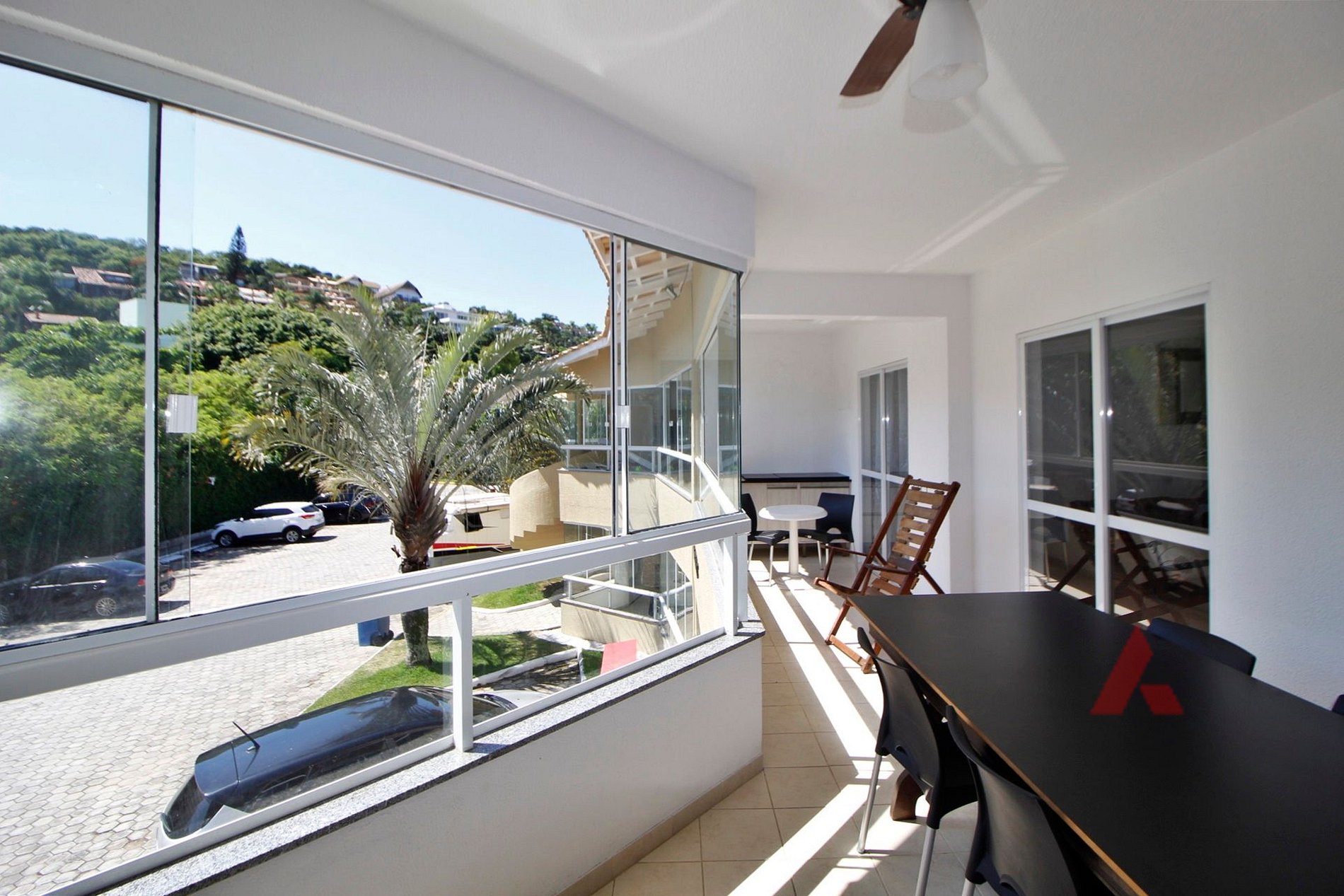 ampla sacada fechada com churrasqueira.