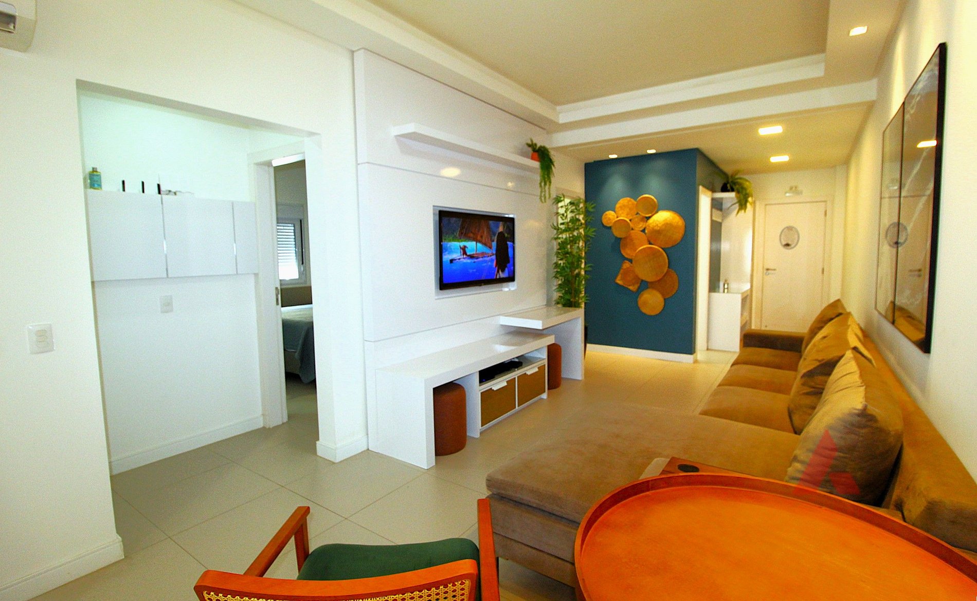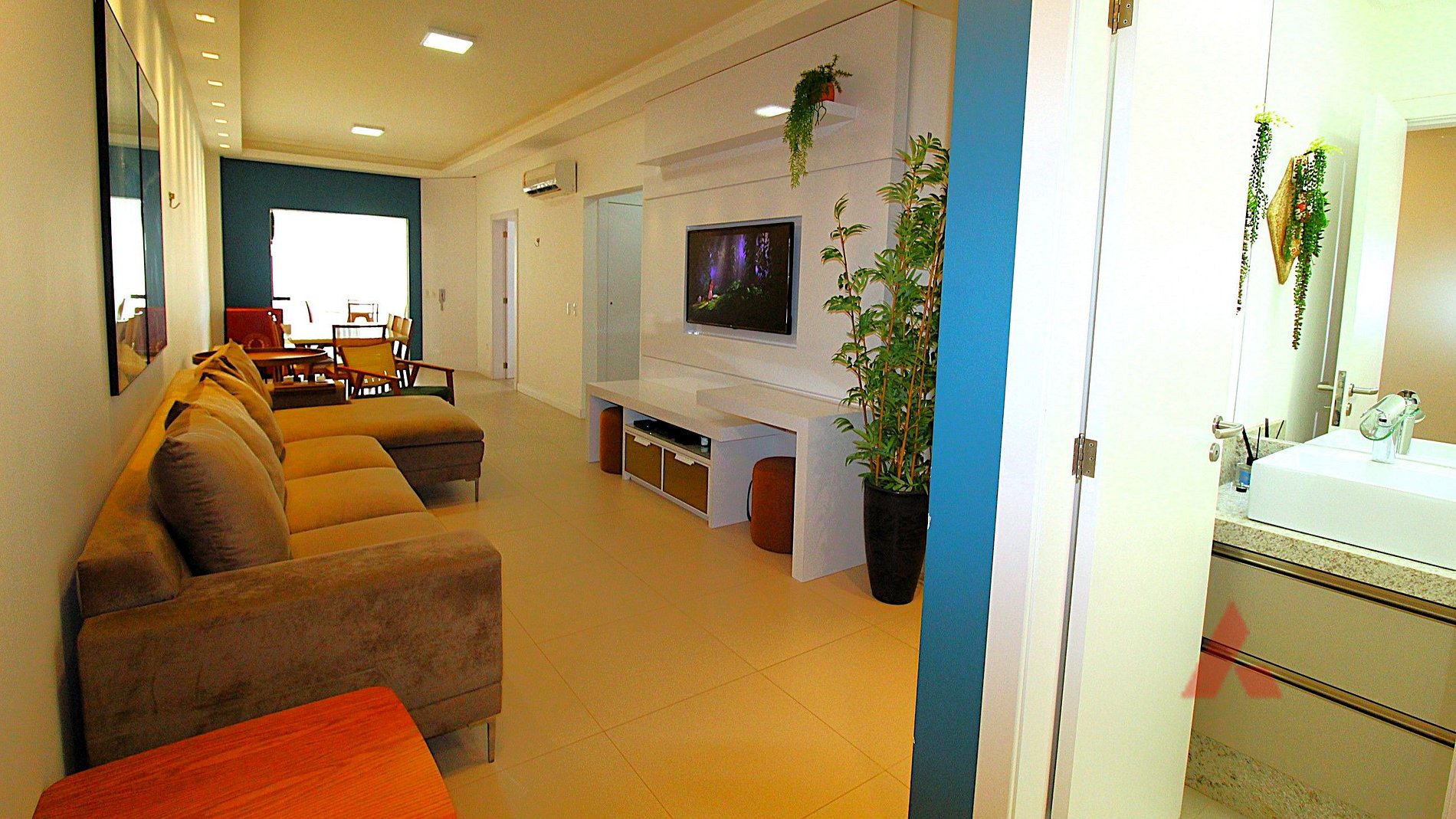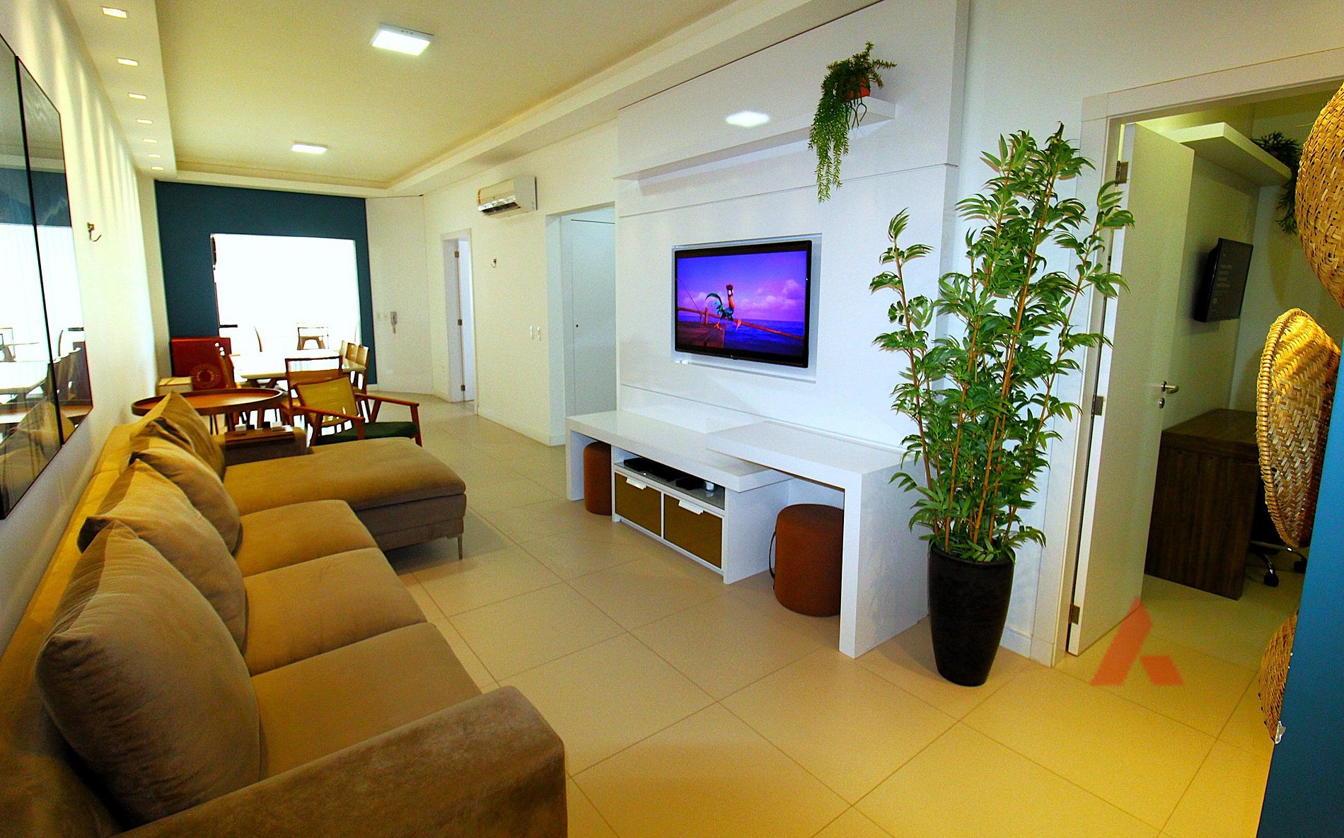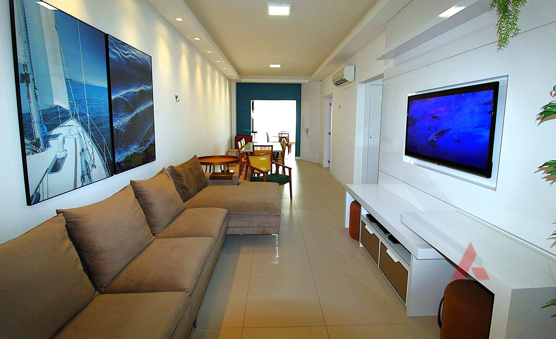 Sala de estar e jantar climatizada com tv.