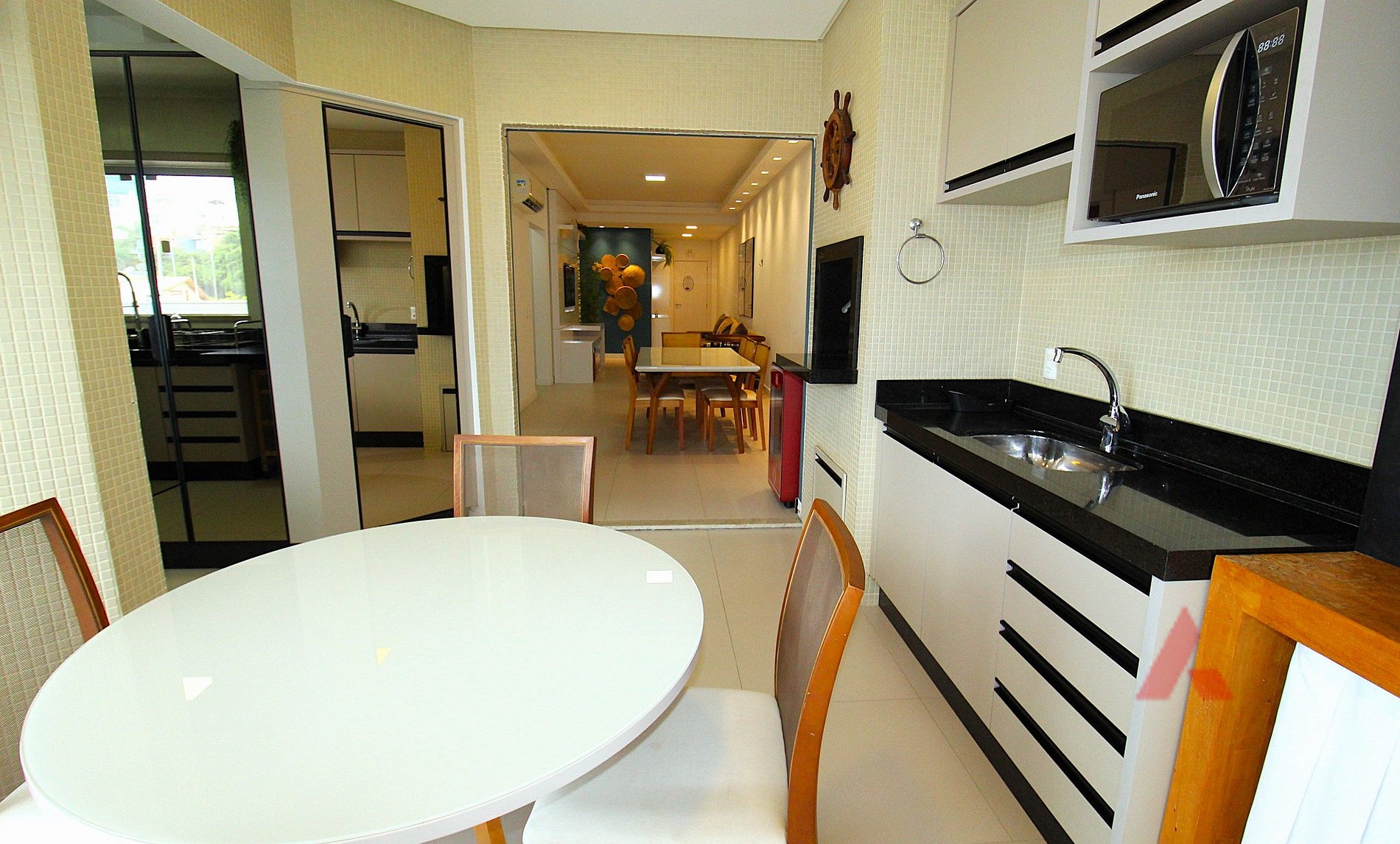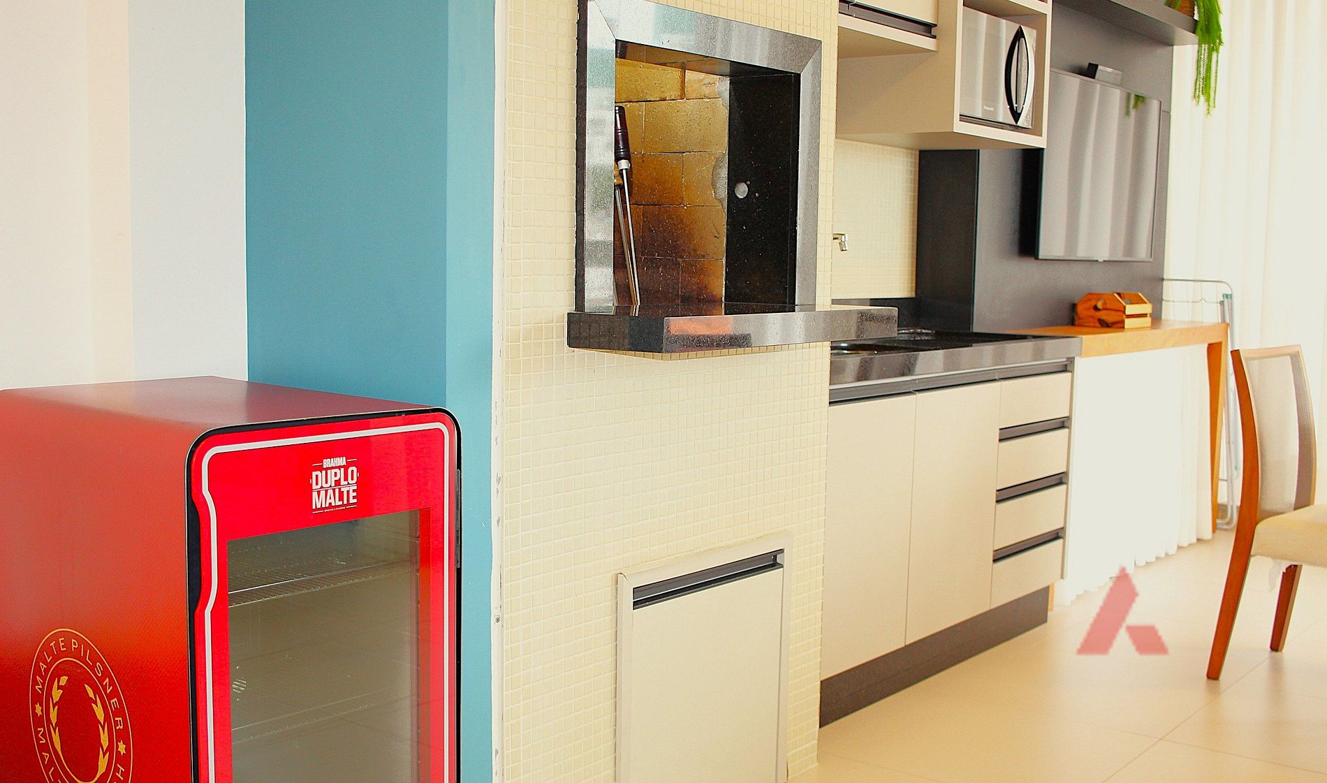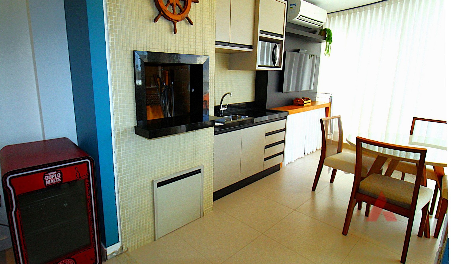 Ampla sacada com churrasqueira, cervejeira e Smart Tv.