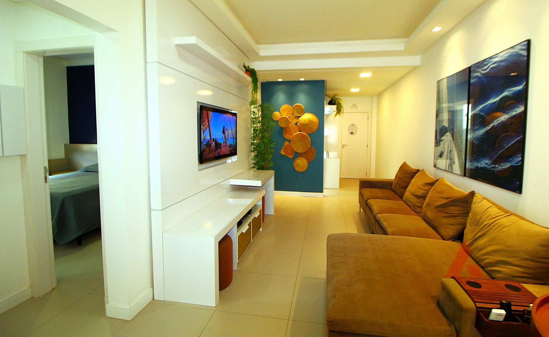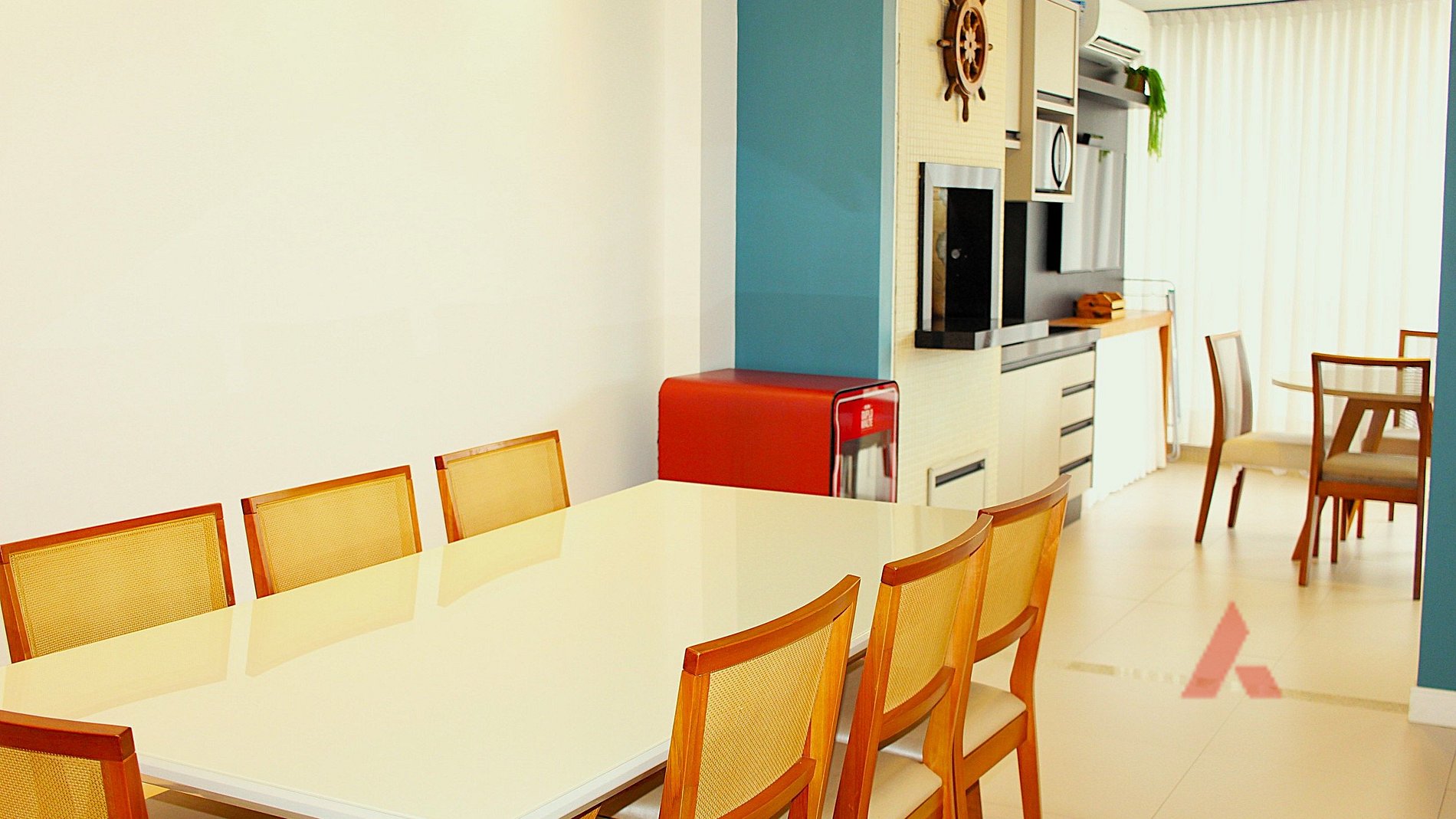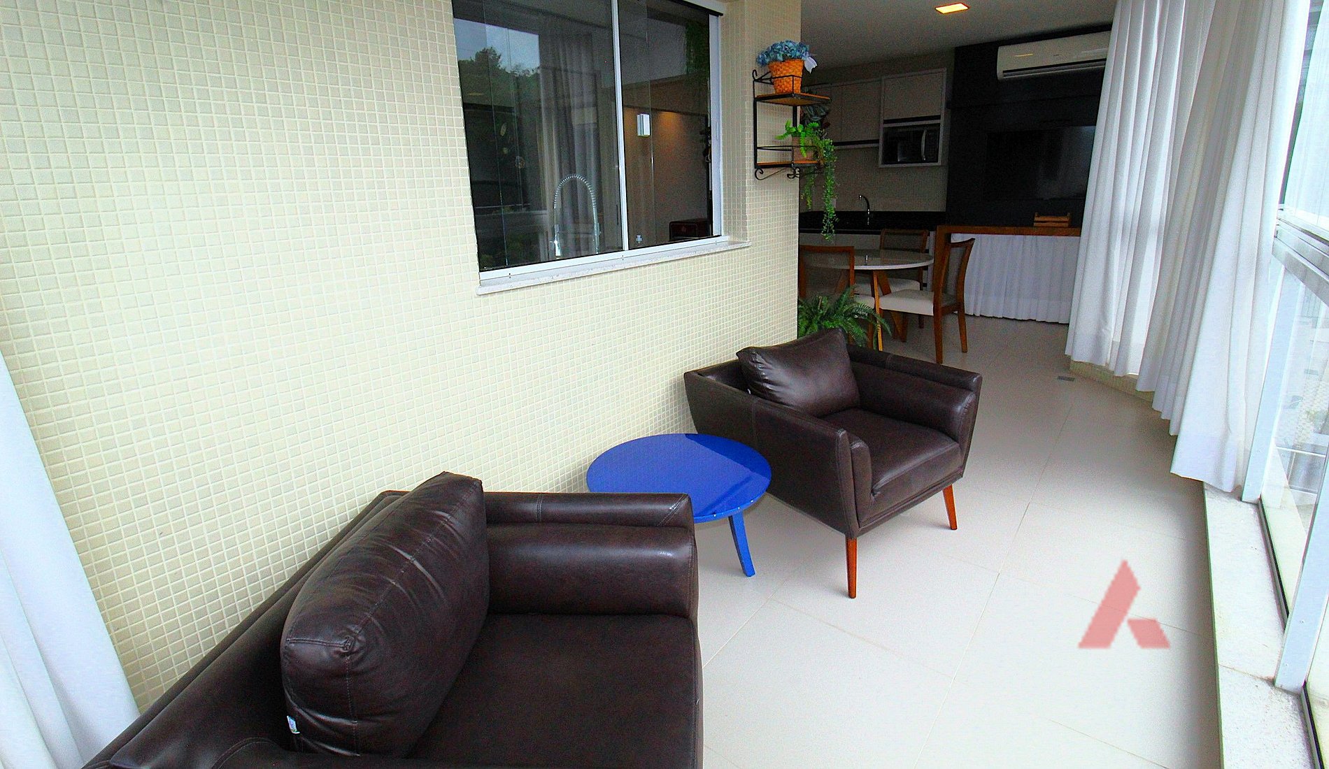 Ampla sacada com churrasqueira, cervejeira e Smart Tv.
