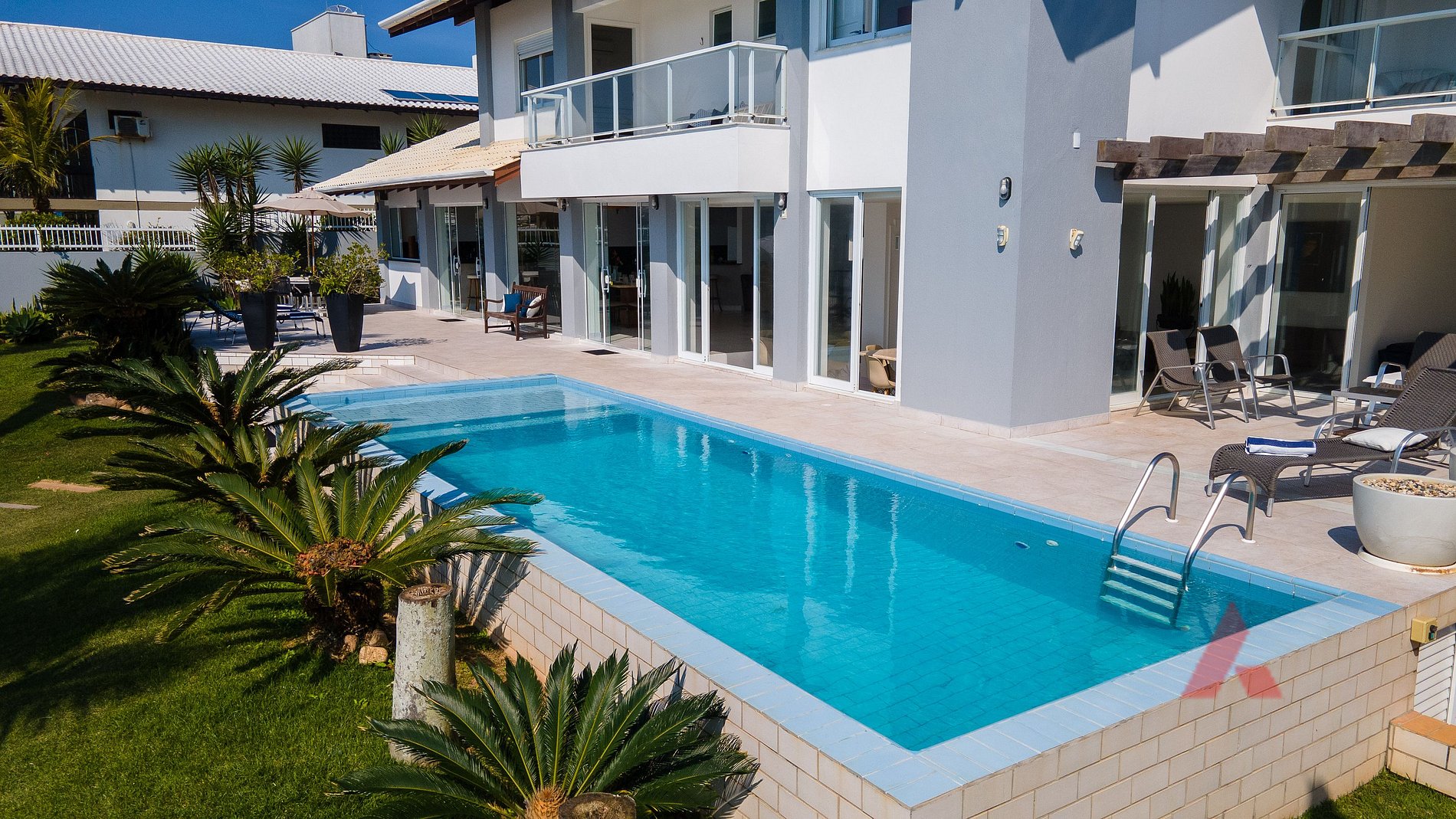 A casa possuí um ótimo deck com total vista para o mar junto a uma excelente piscina e jardins, as férias do seus sonhos.