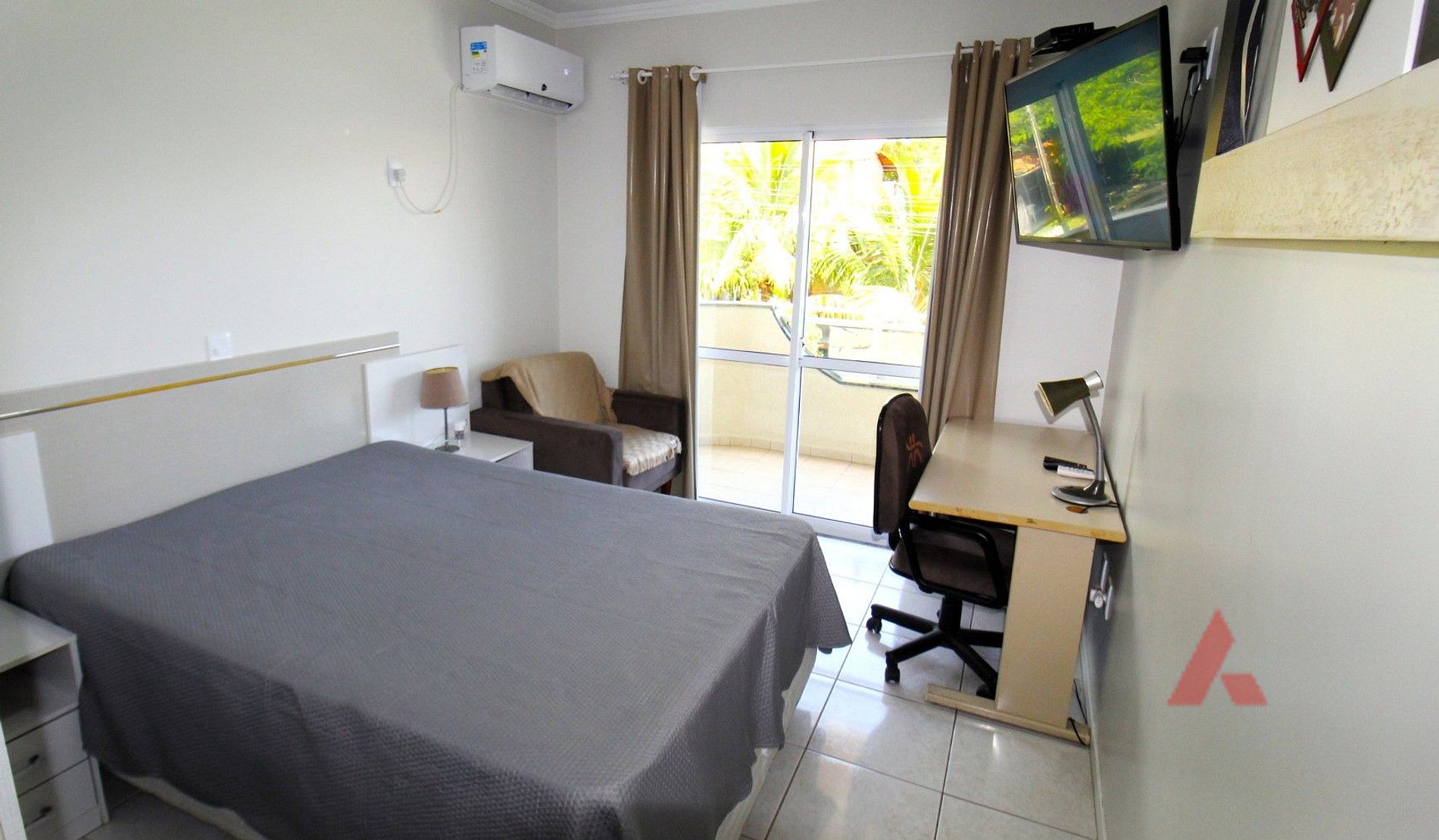 Apartamento com dois dormitórios, sendo 01 suíte com cama de casal (box), com tv, com ar condicionado tipo split.