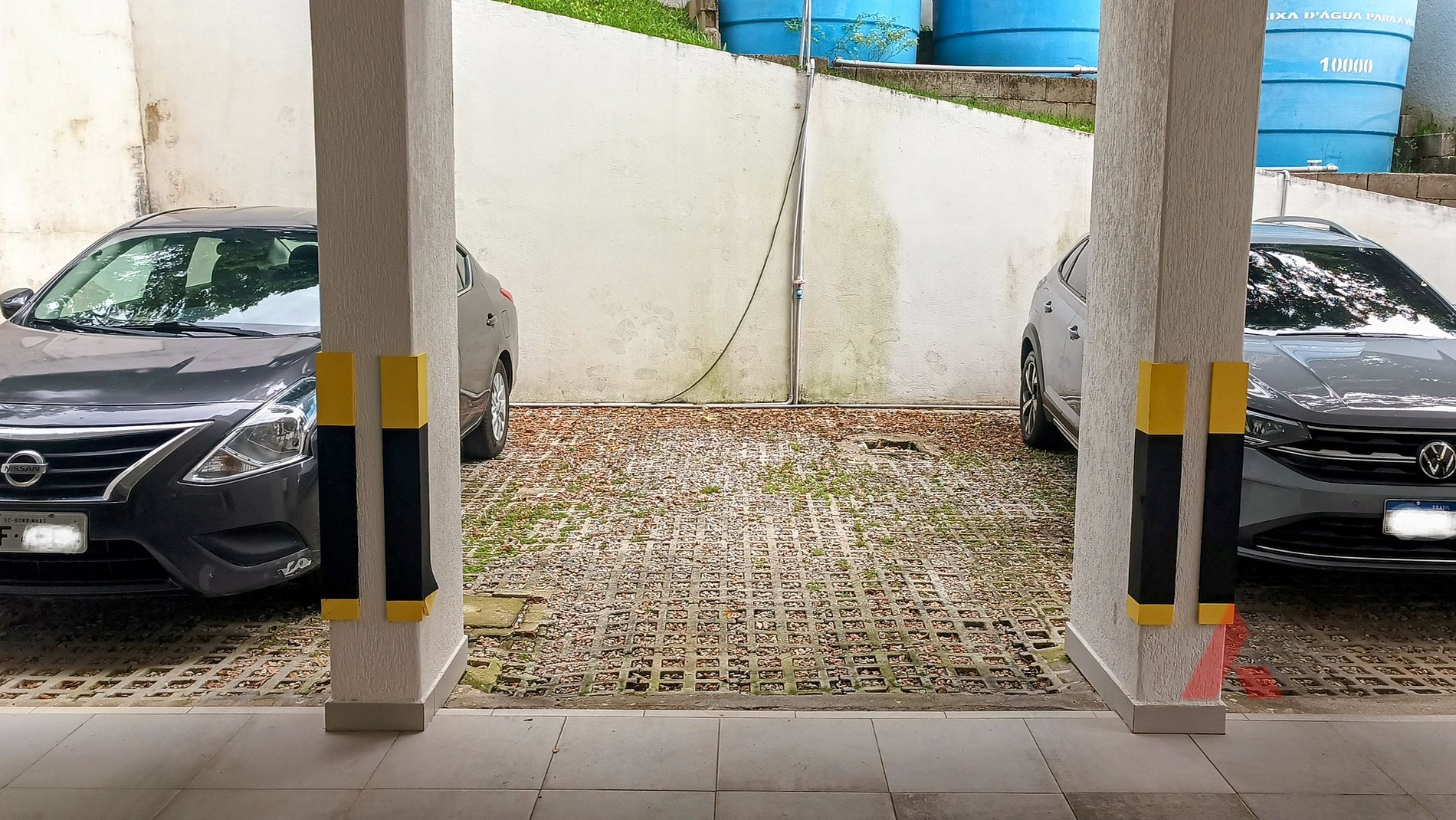 Duas vagas de garagem, sendo uma delas coberta e outra descoberta.