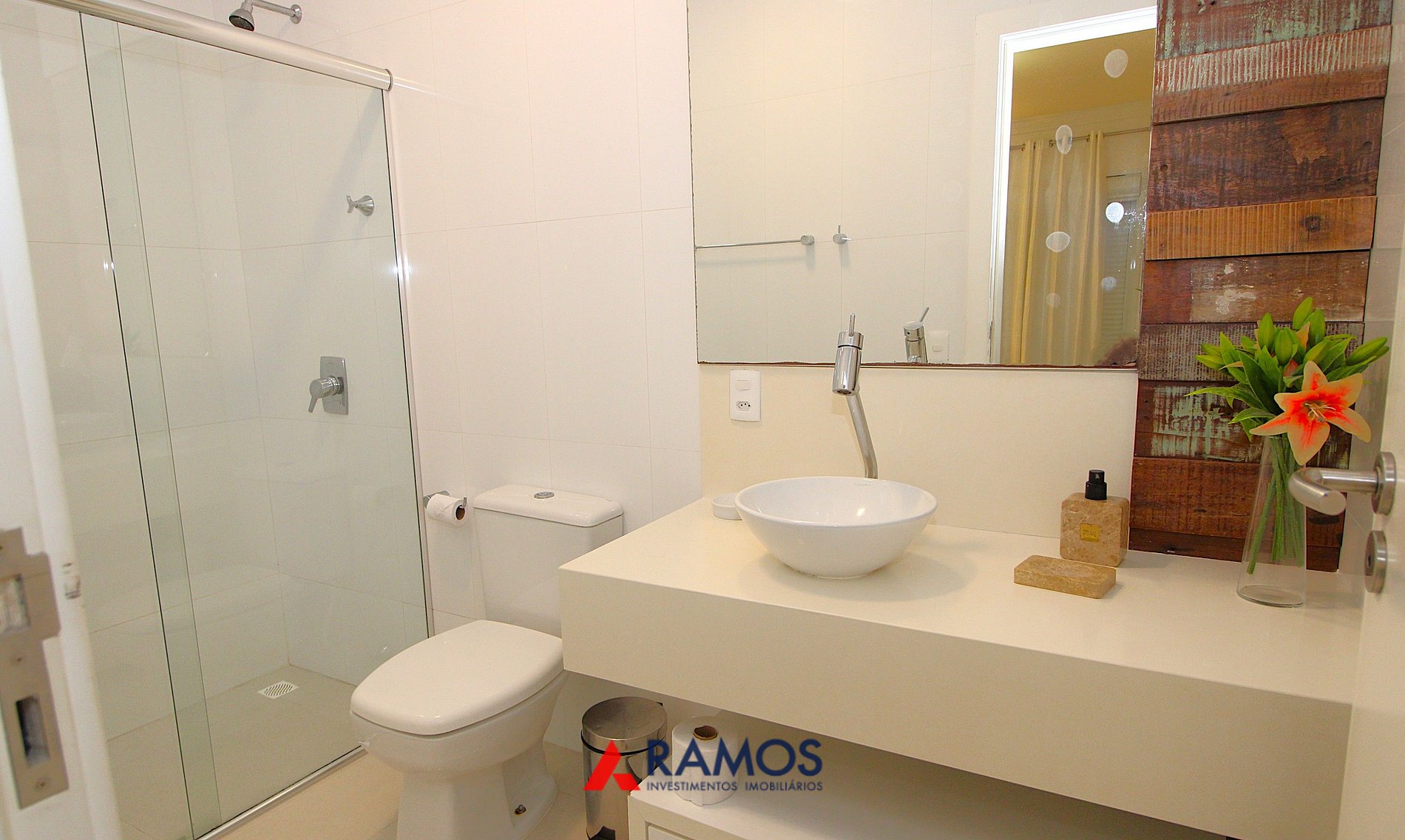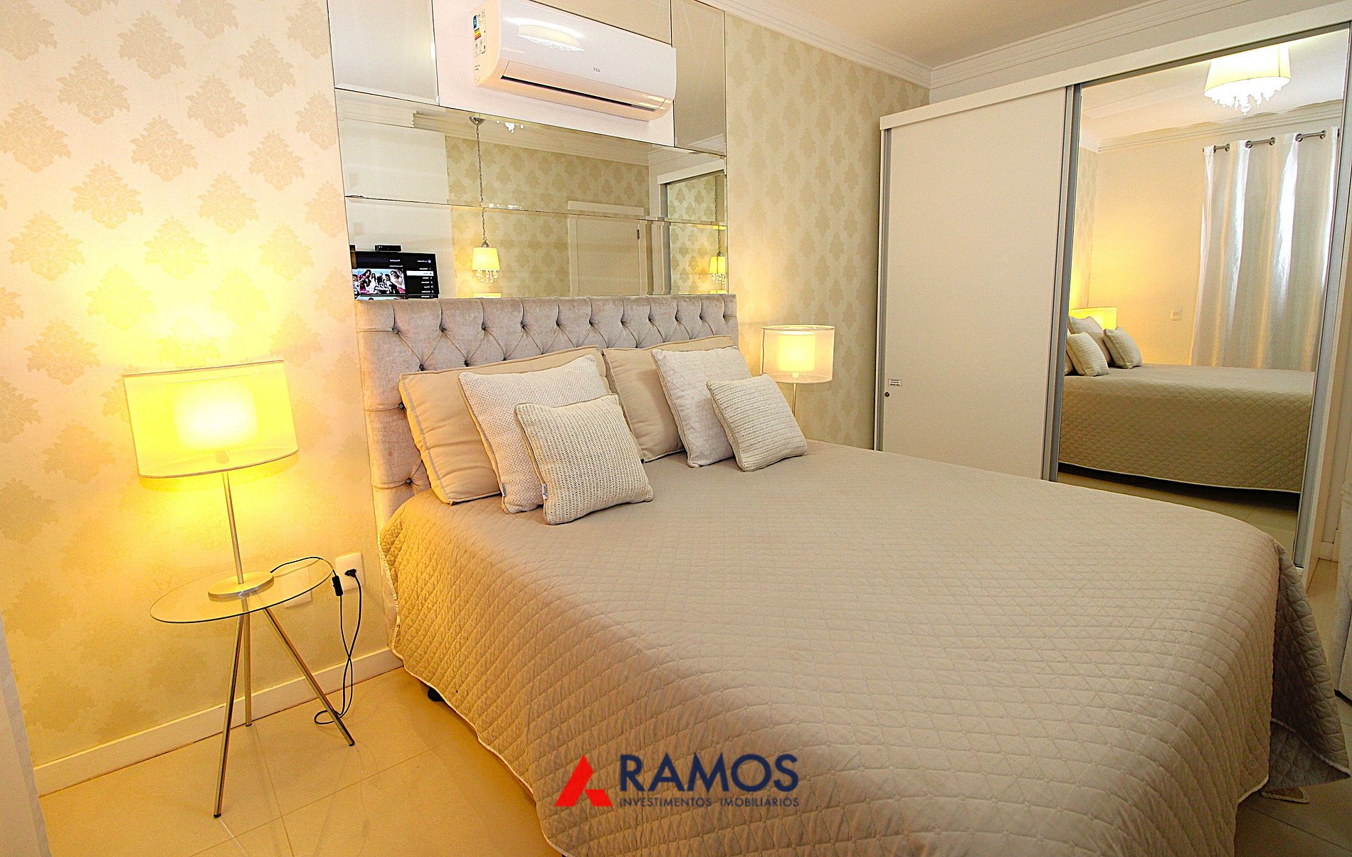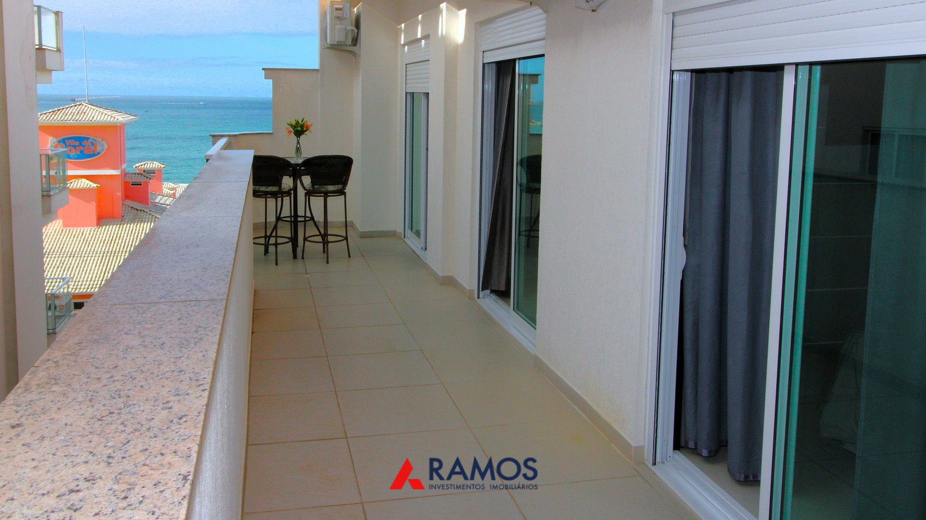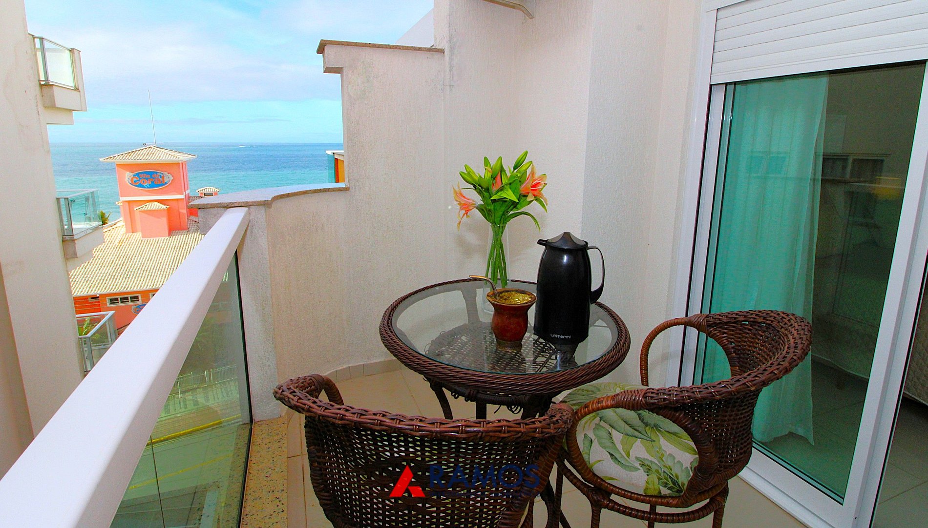 Cobertura com vista lateral para o mar com 03 quartos todos com ar condicionado, ampla sacada lateral com churrasqueira e hidromassagem.