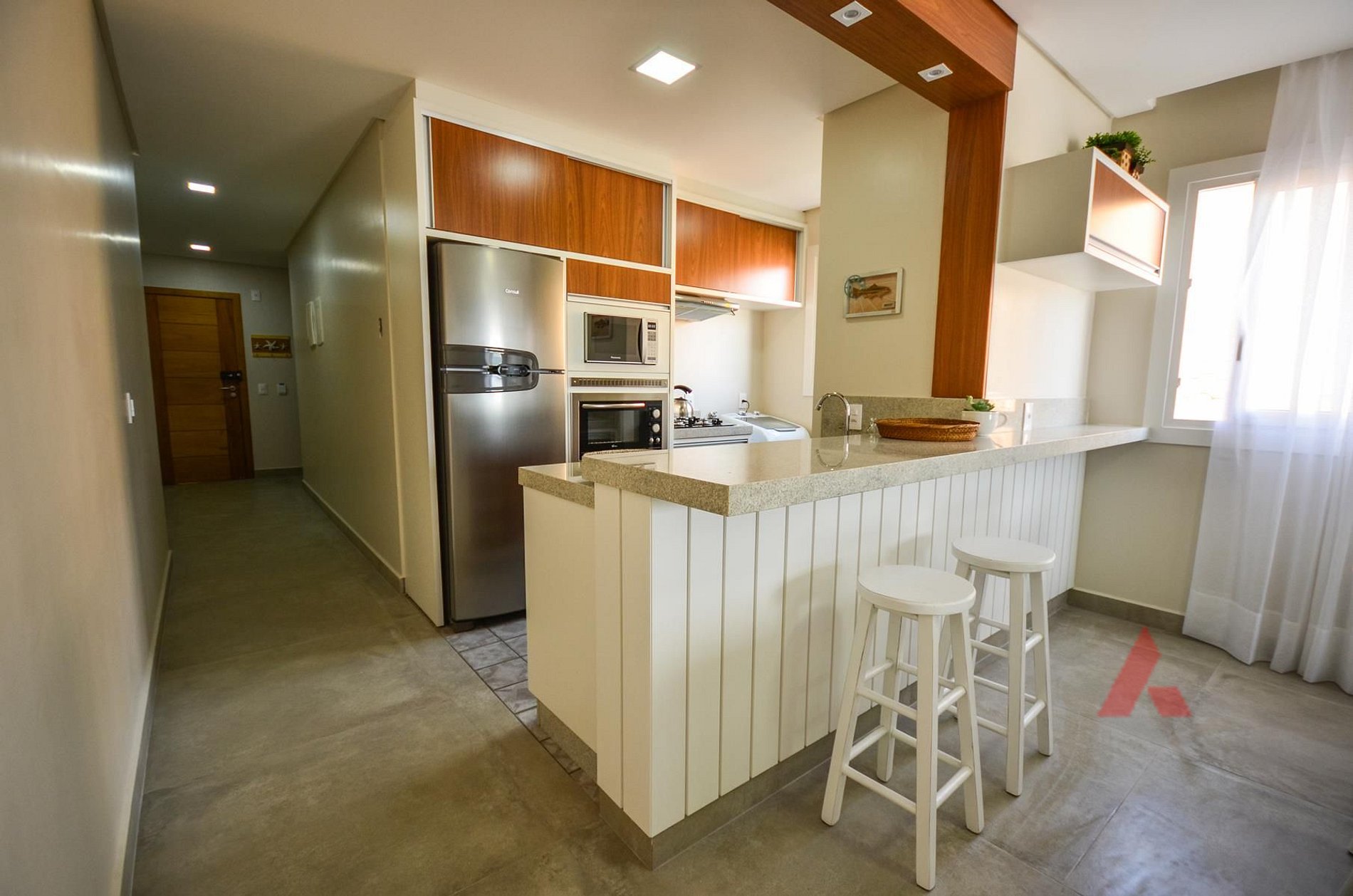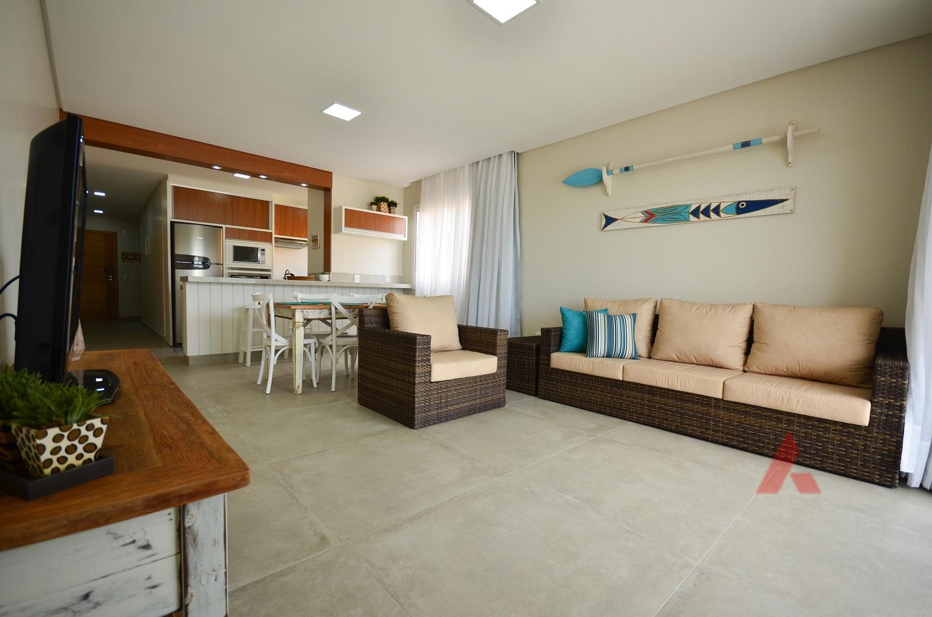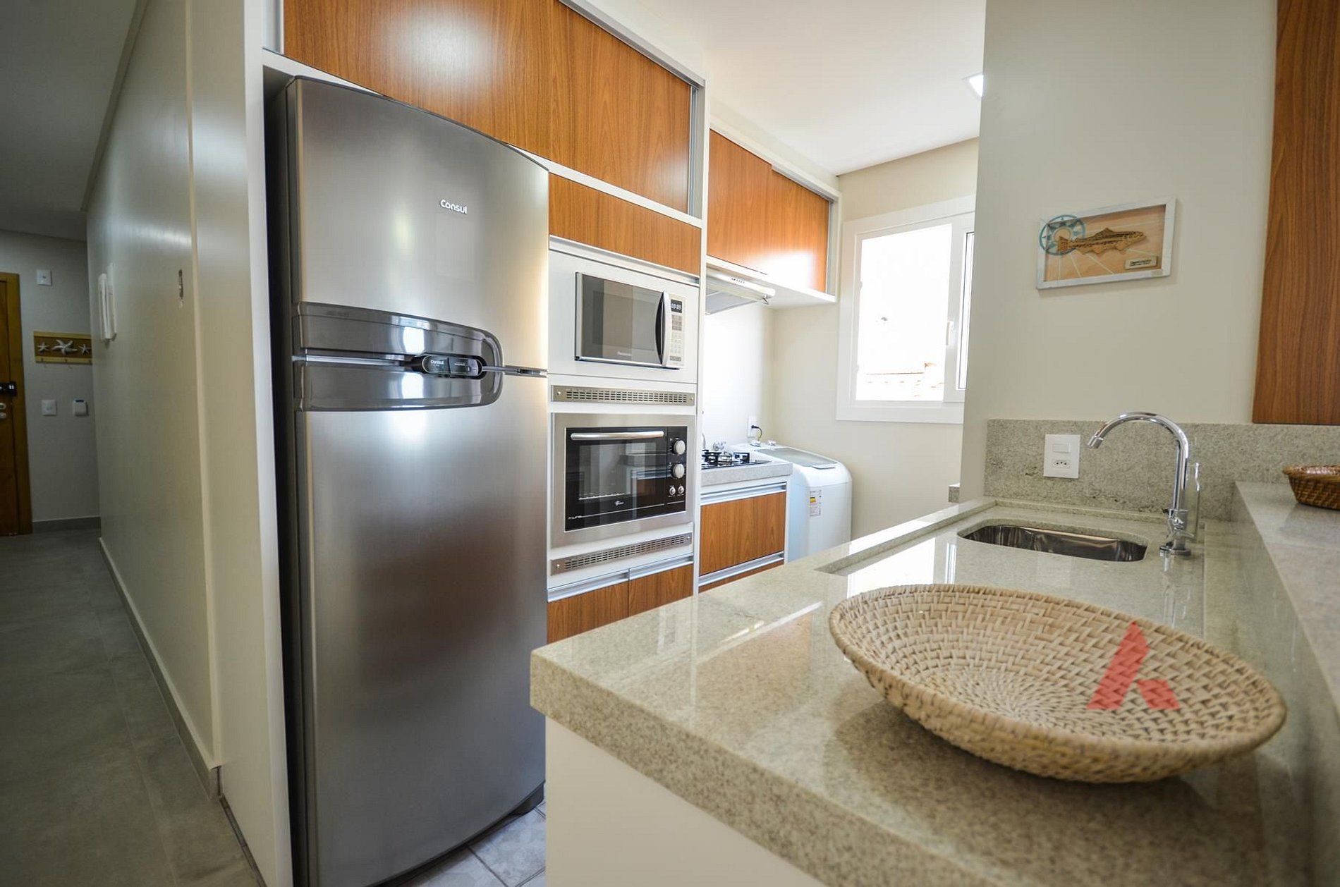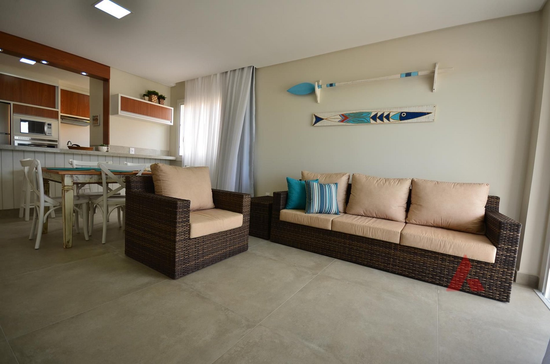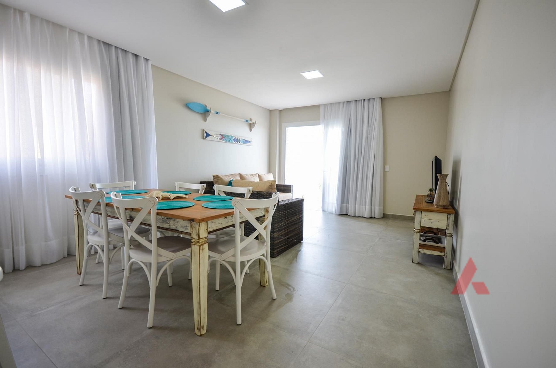 Apto com excelente padrão, com 02 dormitórios, sendo uma suíte de casal com cama padrão Queen size mais 01 cama auxiliar com ar condicionado, 01 dormitório com 01 cama de solteiro tipo box mais uma cama auxiliar com ar condicionado, sala de estar e jantar em um ambiente conjugado e amplo com Tv, muito bem equipado e decorado, cozinha equipada com todos os utensílios necessários, sacada com churrasqueira linda vista para o mar, área de serviço com lava roupas, 02 vagas de garagem, internet Wi fi. Tudo novo e muito bem decorado.