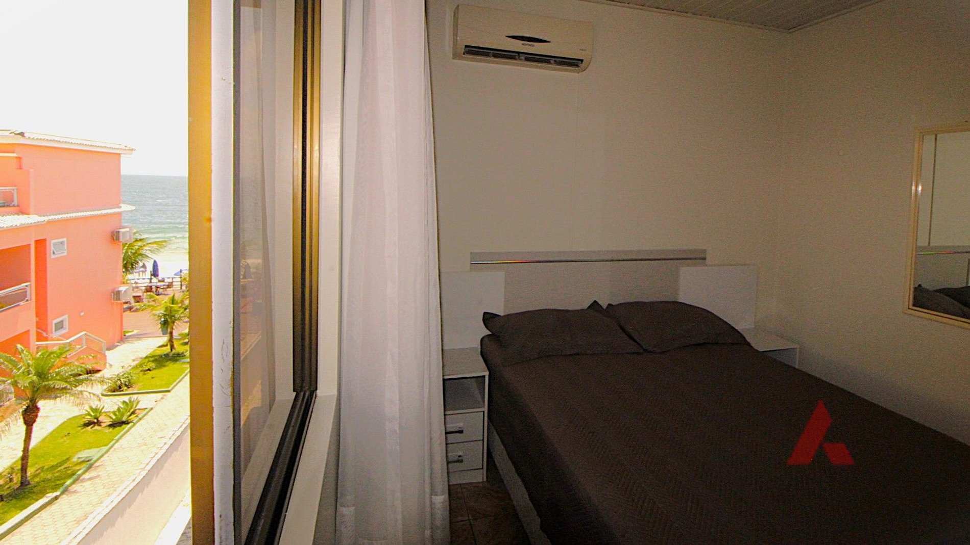 Apto de fundos com vista para o mar, entrada compartilhada.
