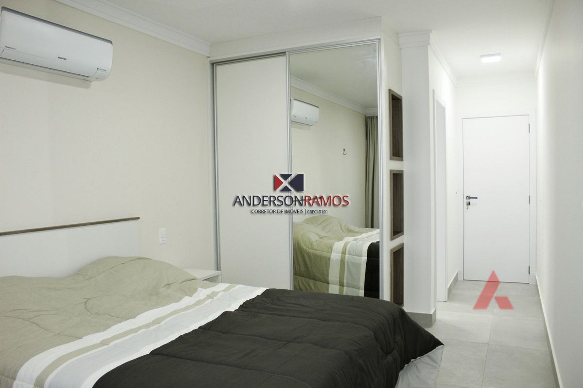 Uma suíte de com cama de casal box (queen) com ar condicionado.