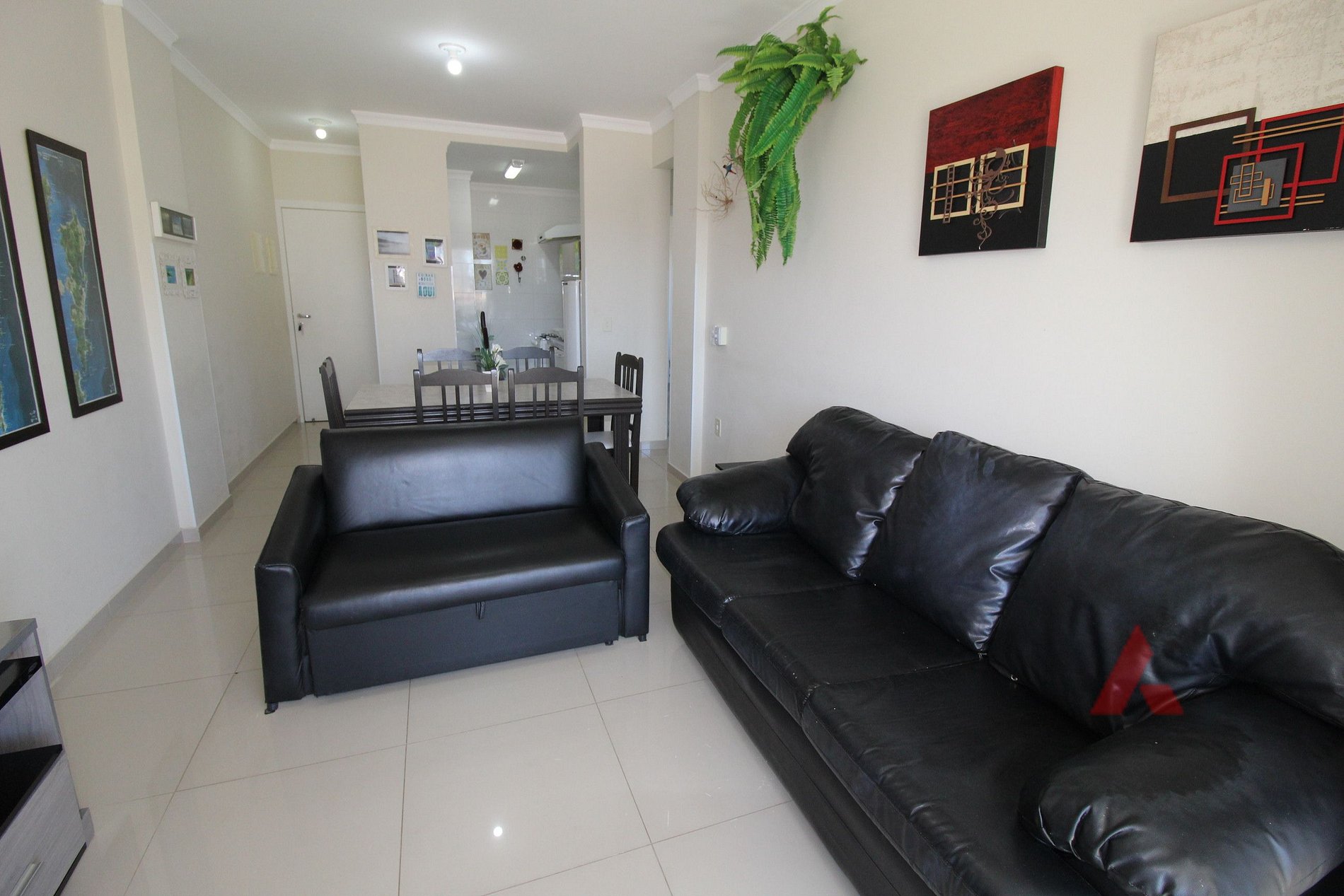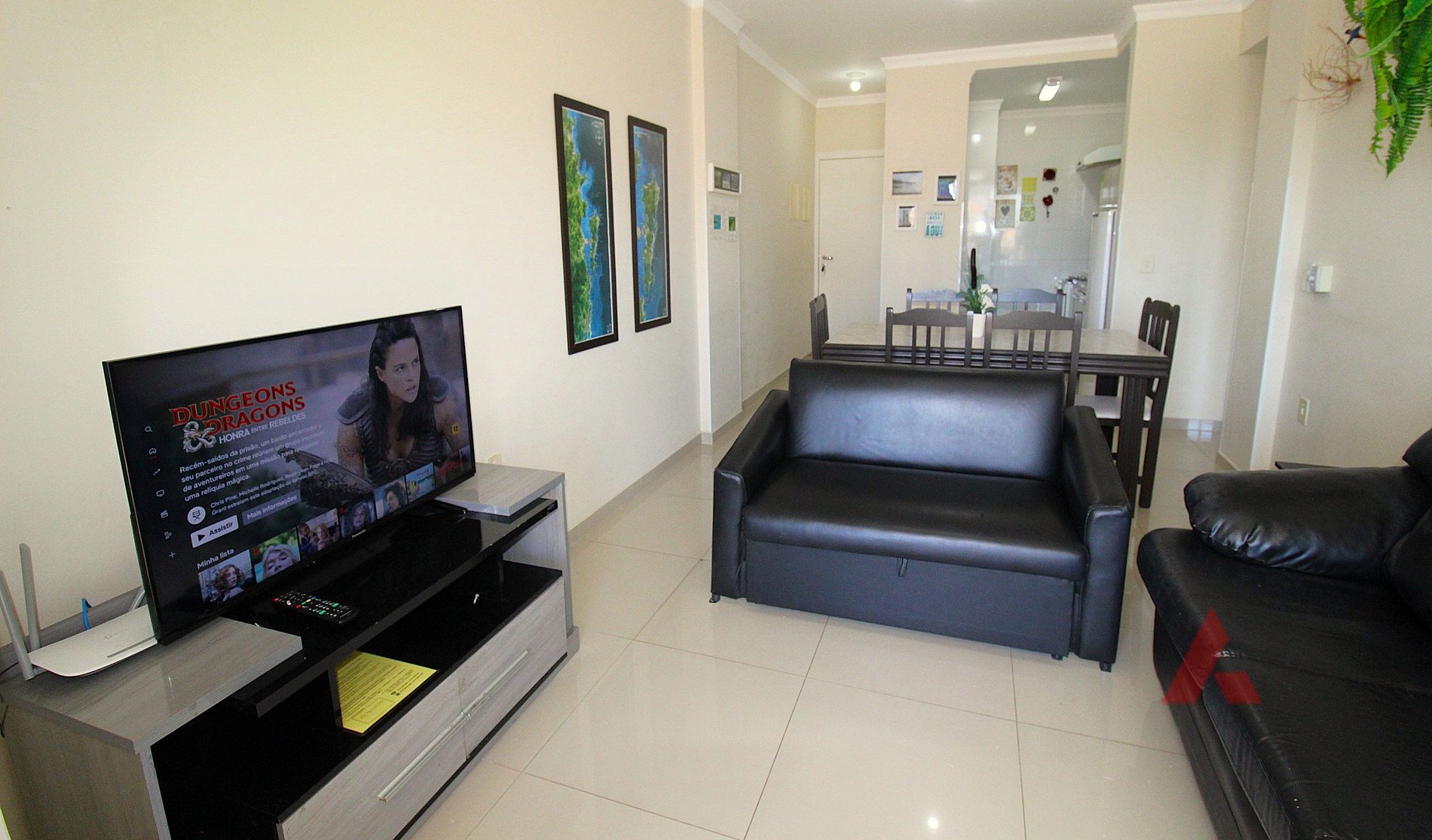 Sala de estar e jantar com TV (smart), e sofás
