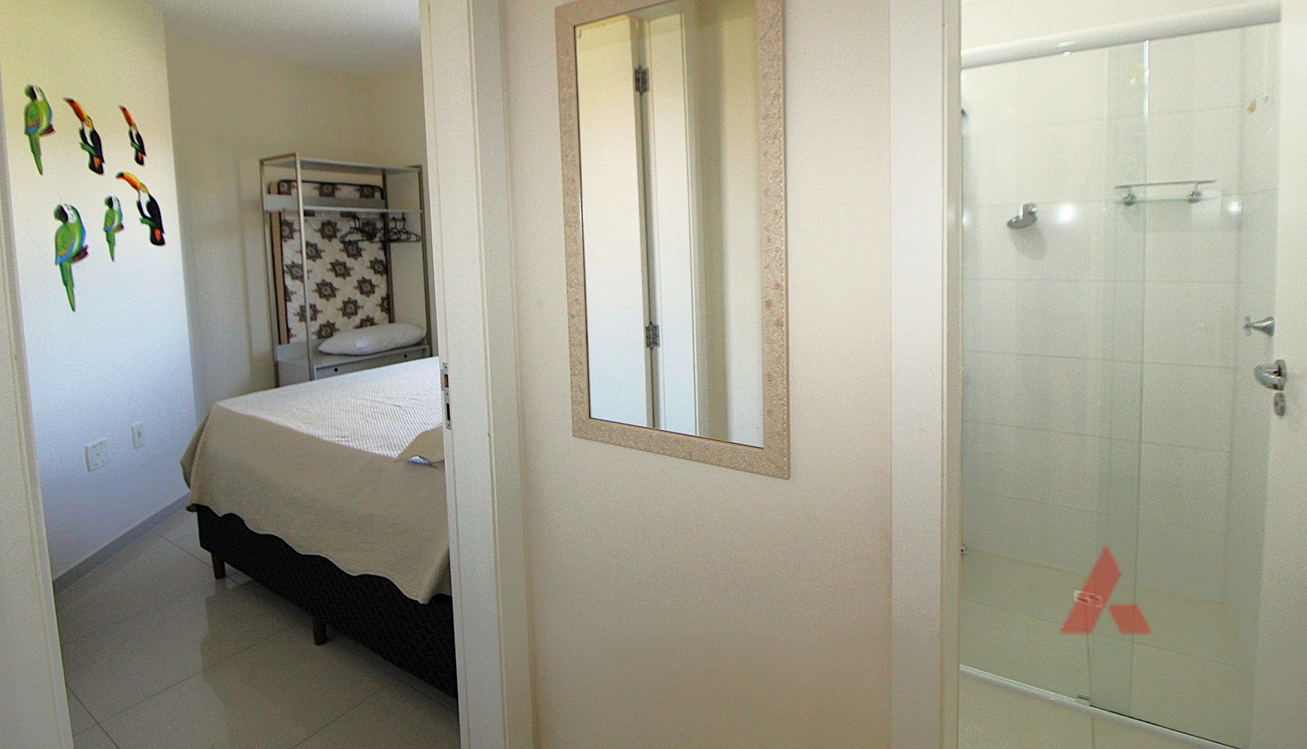 - Uma suíte de casal com ar condicionado,
