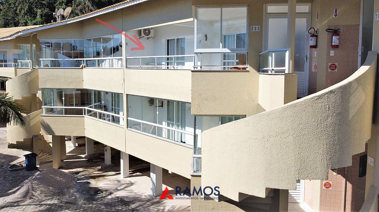 Excelente Apartamento em um condomínio fechado no centro de Bombinhas com ampla sacada com churrasqueira.