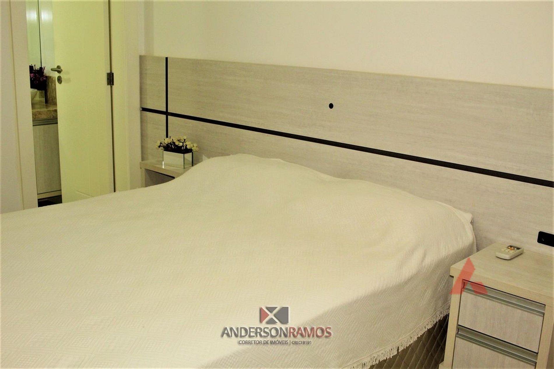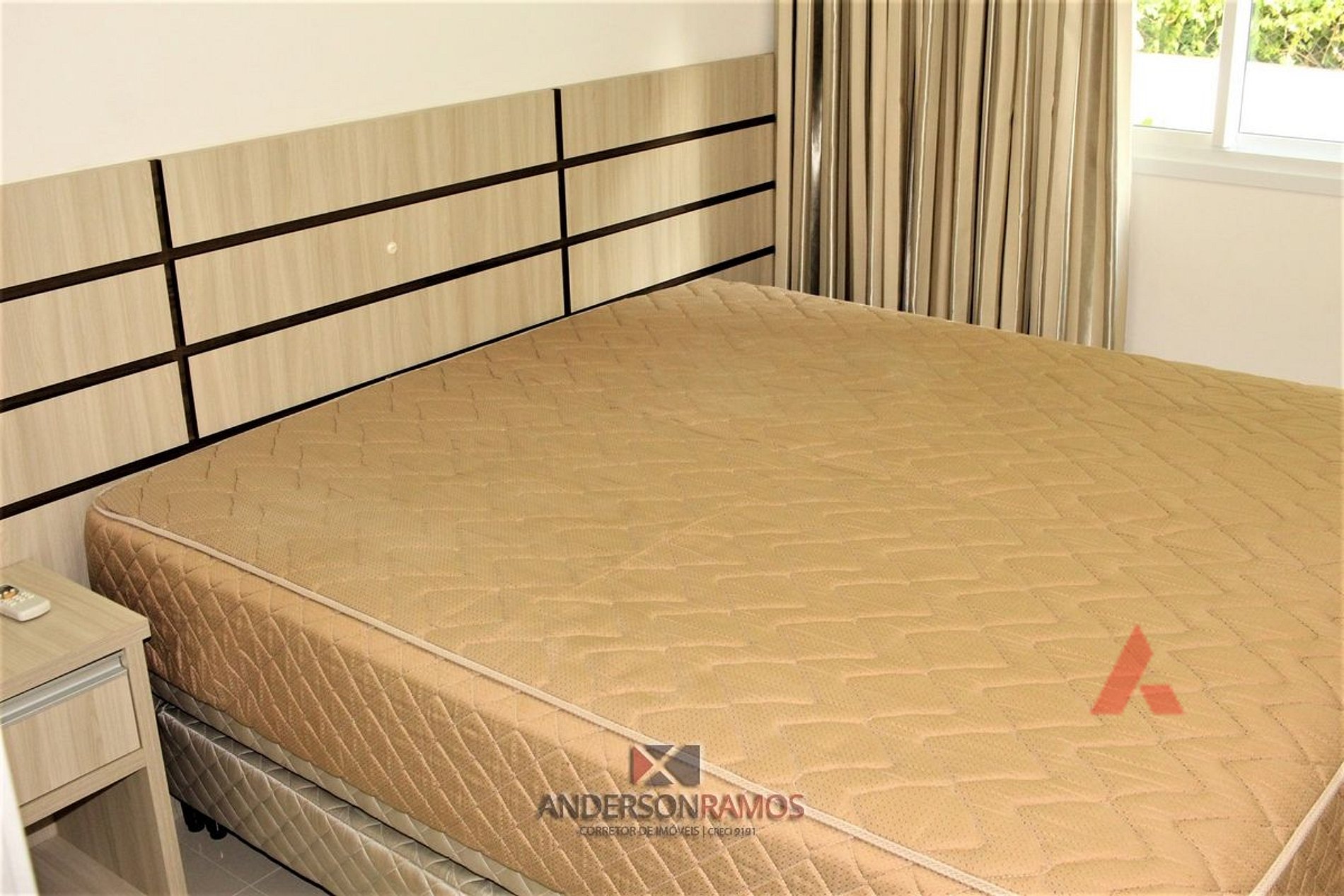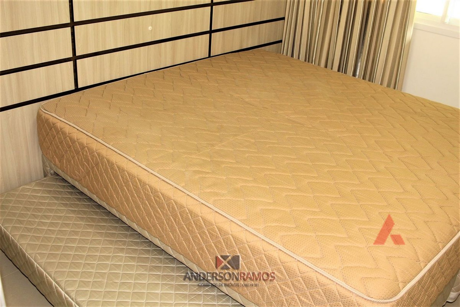 Uma suíte de casal com cama box e ar condicionado.