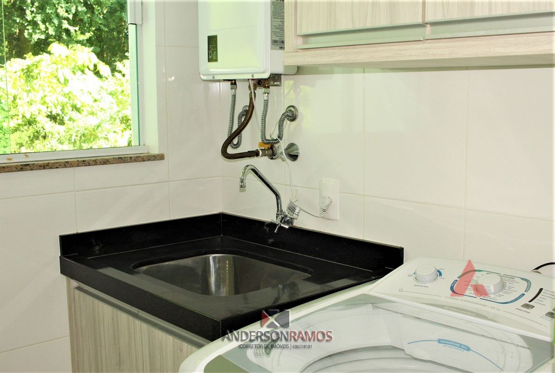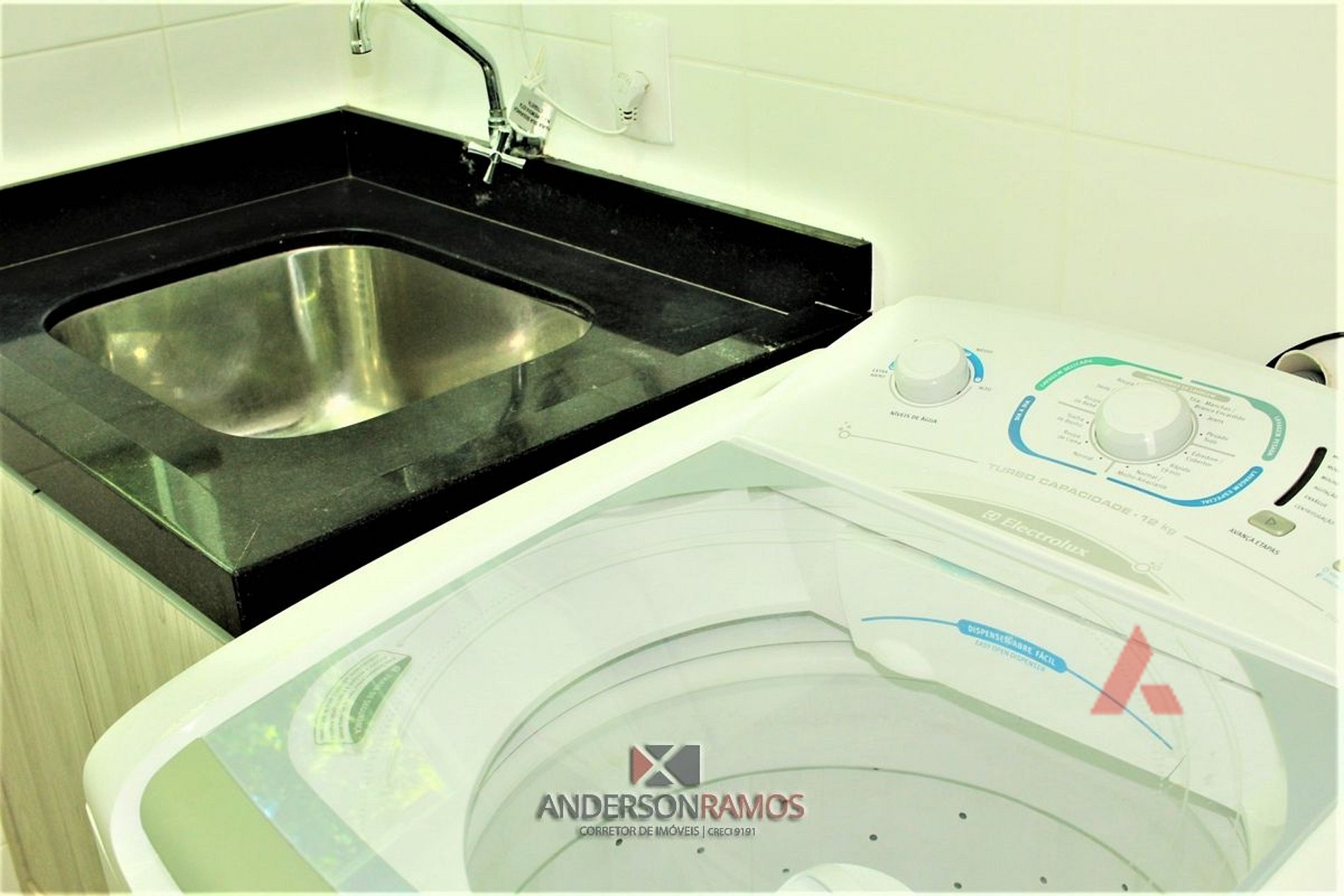 Área de serviço com lava roupas,
