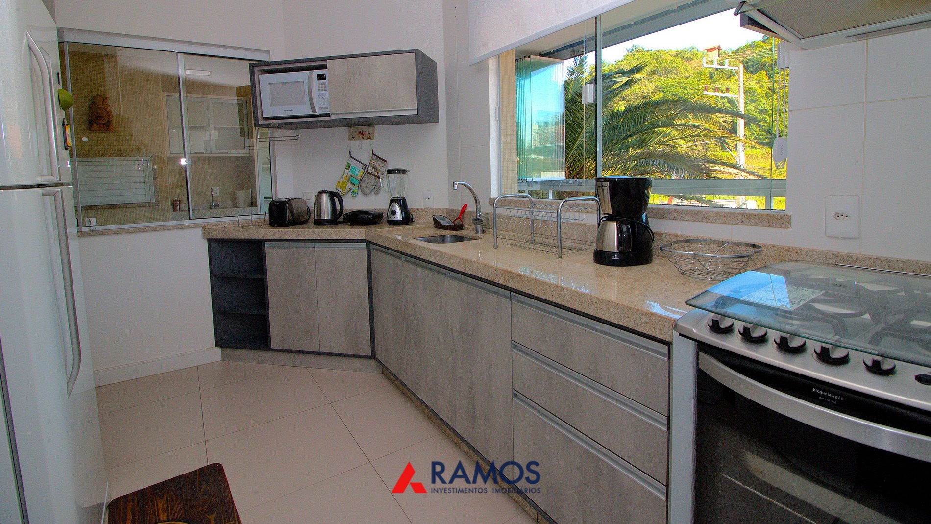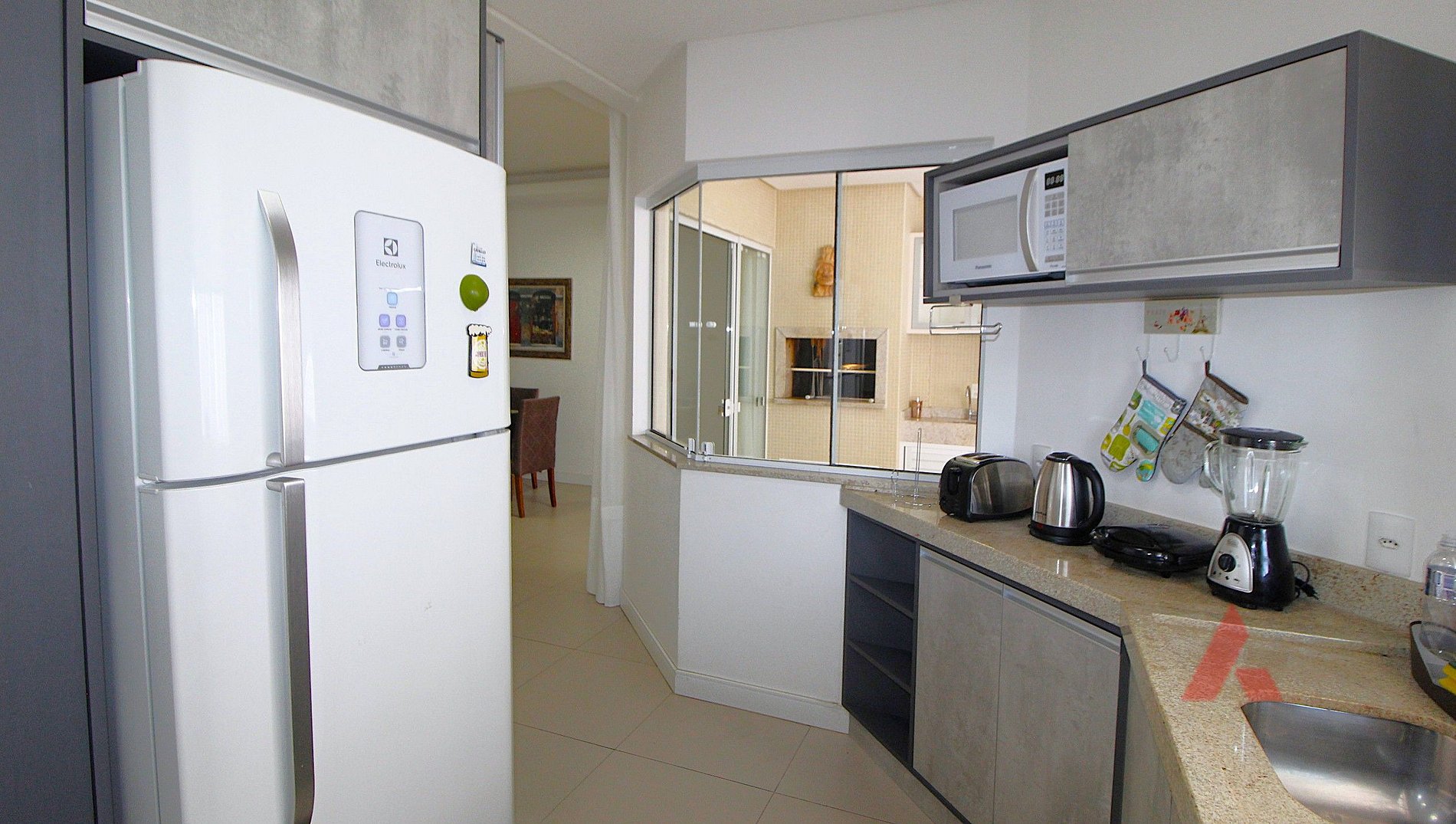 Cozinha equipada com micro ondas e demais utensílios,