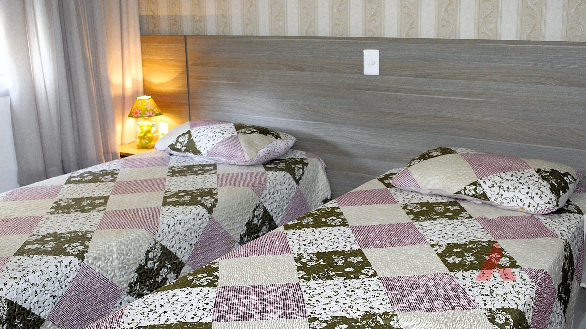 01 Suíte com 2 camas de solteiro tipo box e ar condicionado + 02 colchões de solteiro.