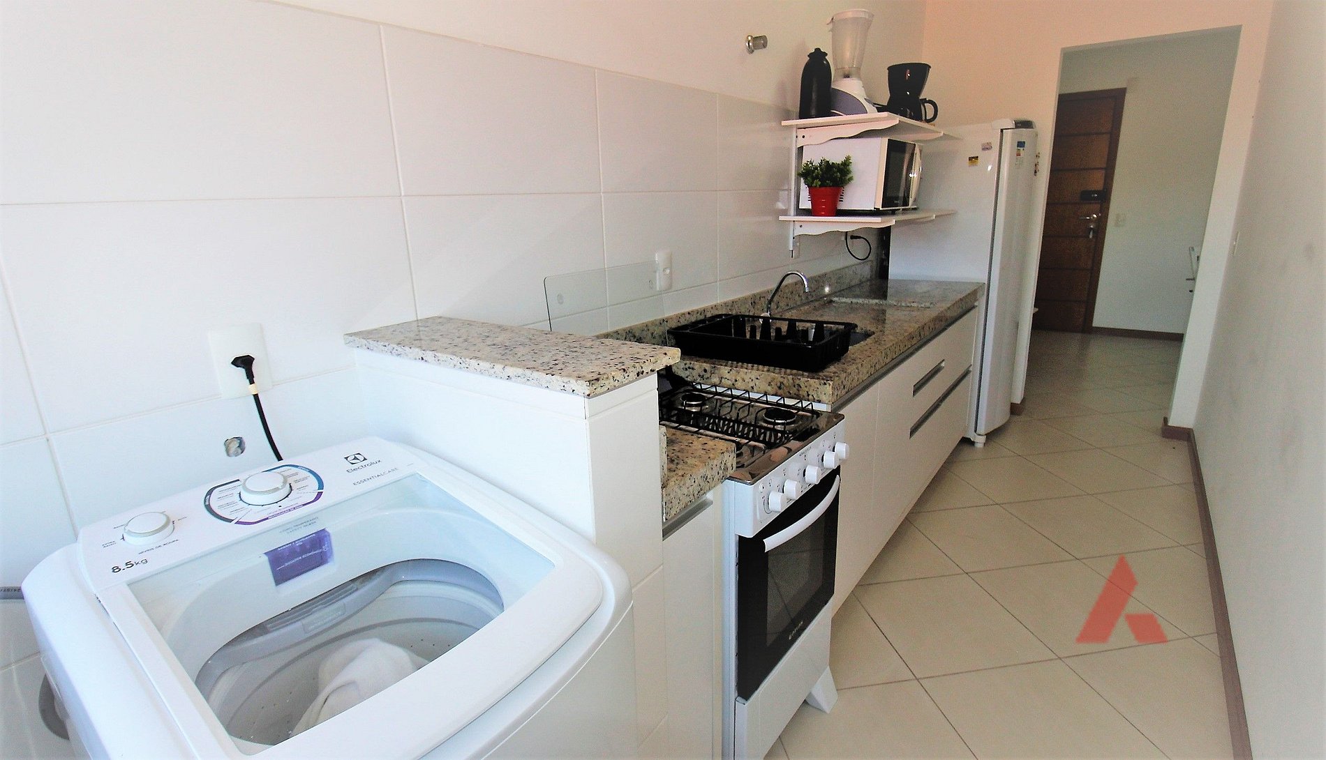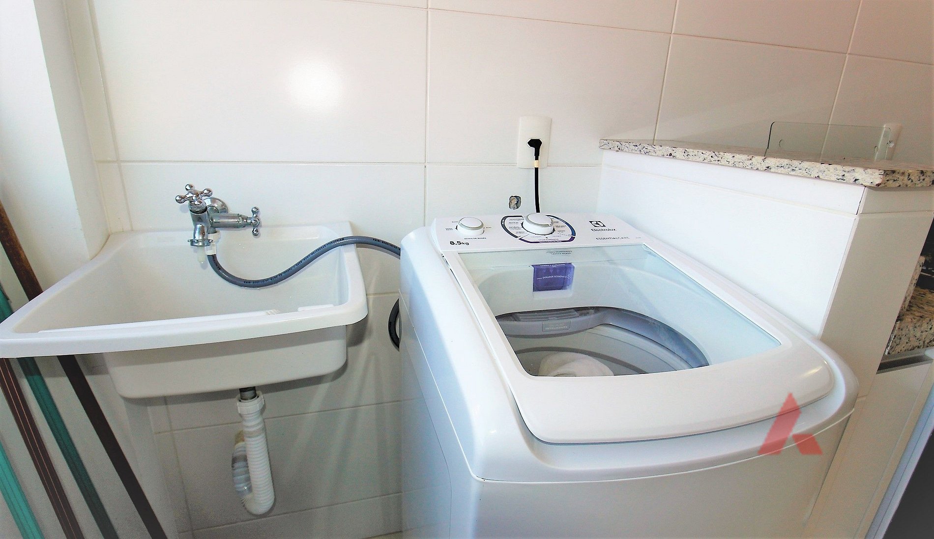 Área de serviço com lava roupas.