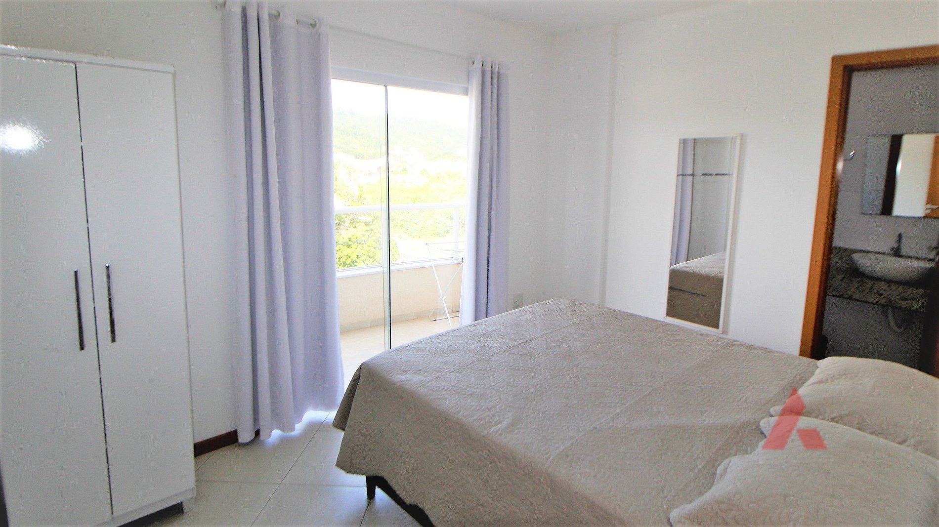 - Uma suíte de casal com cama box queen, com ar condicionado,