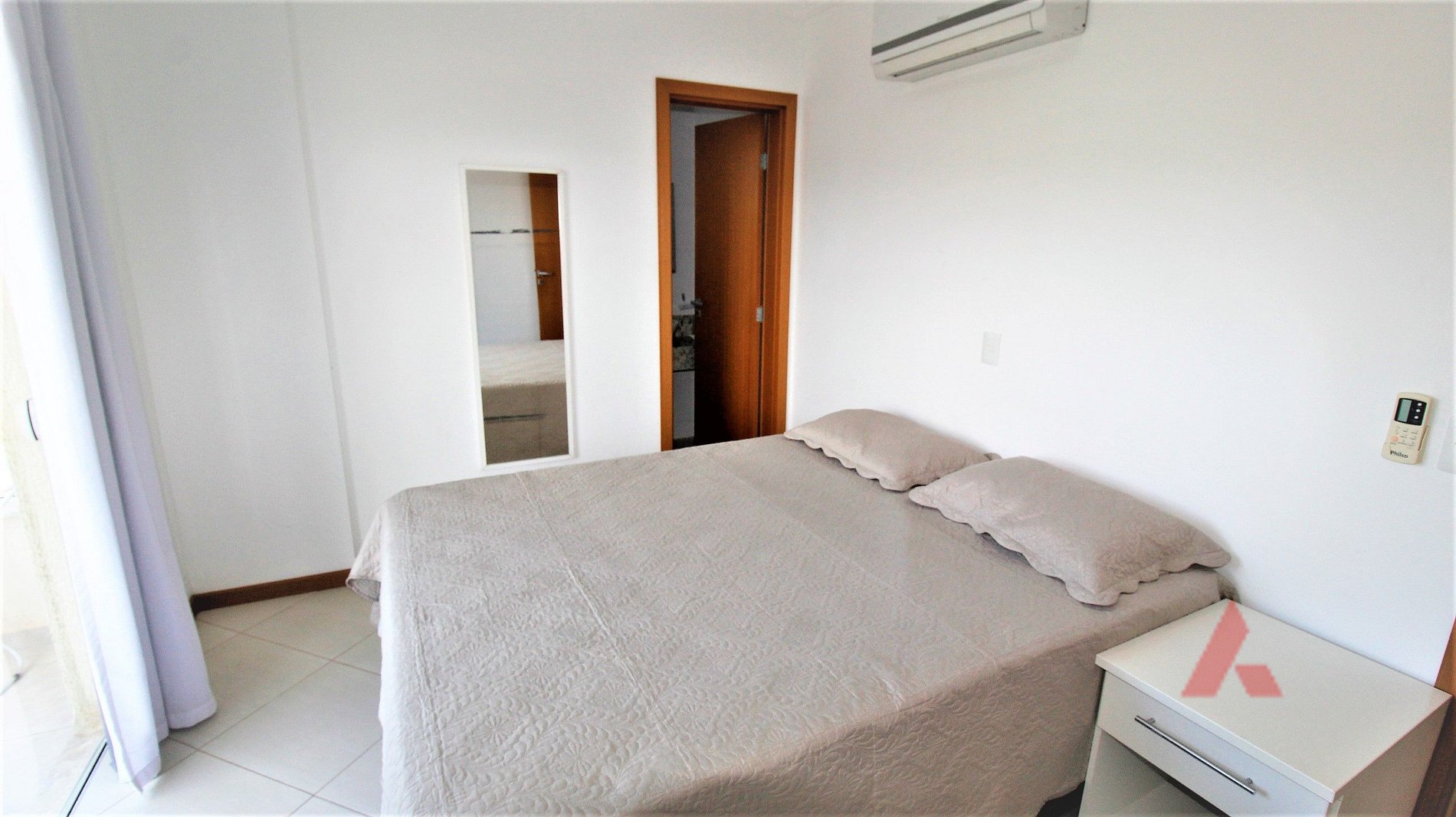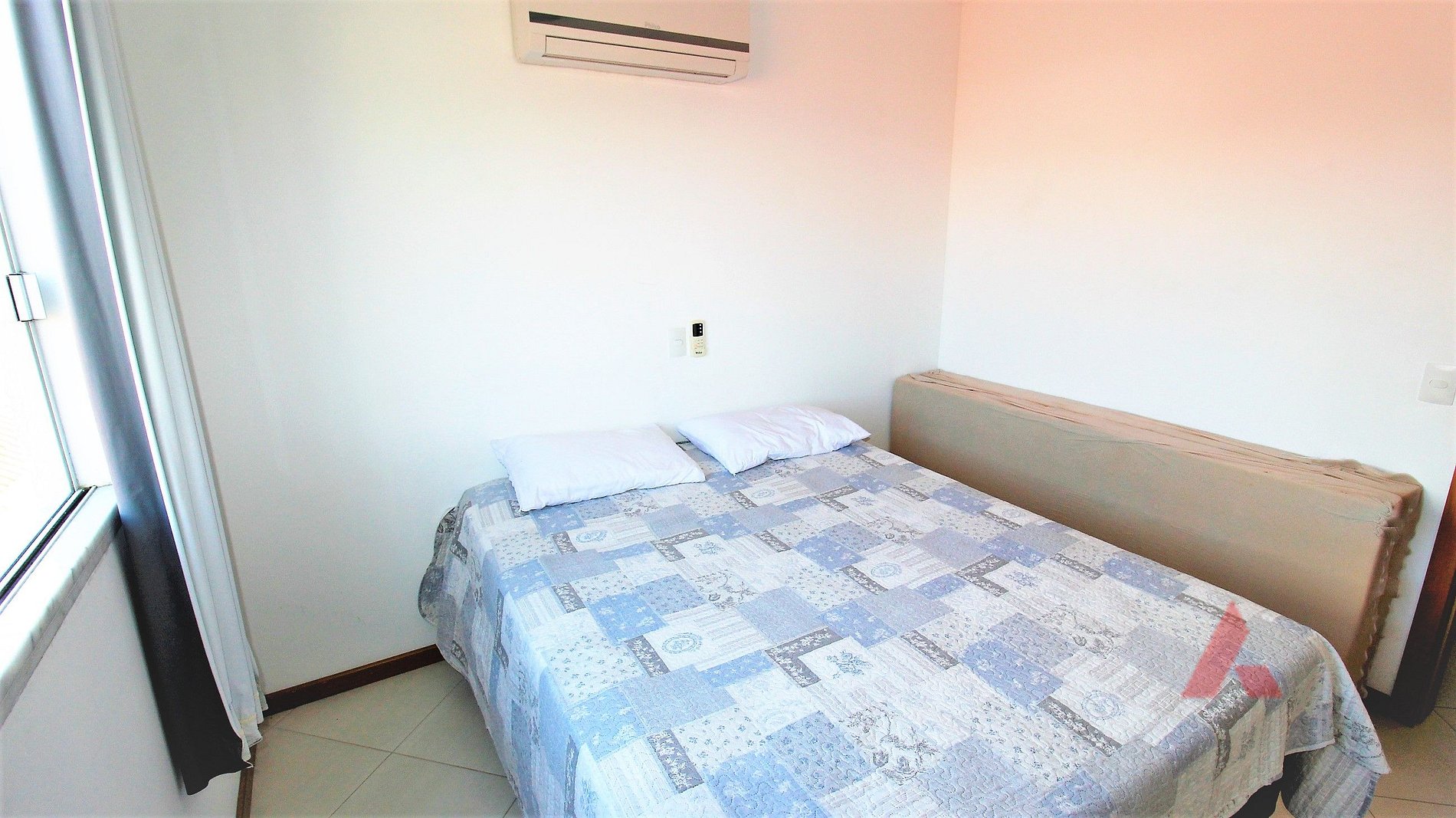 - Um dormitório de casal cama box queen, com ar condicionado.
