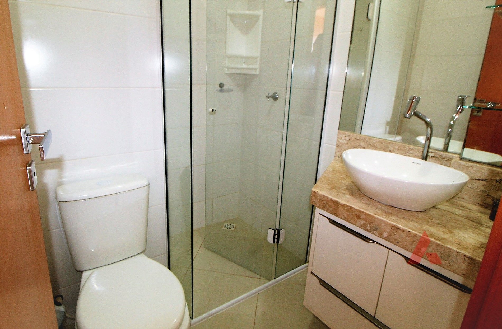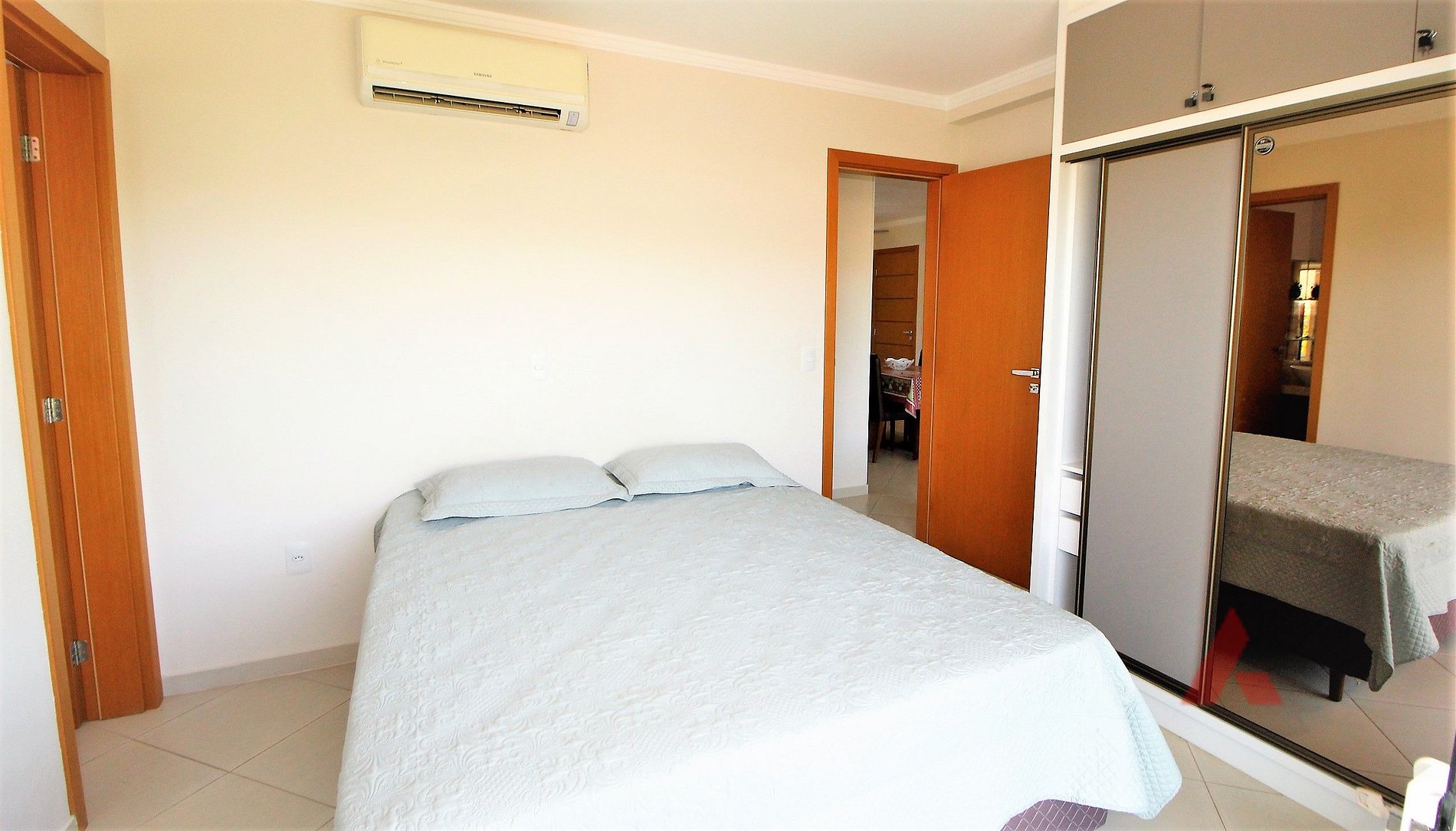 - Uma suíte de casal com cama box queen, com ar condicionado,
