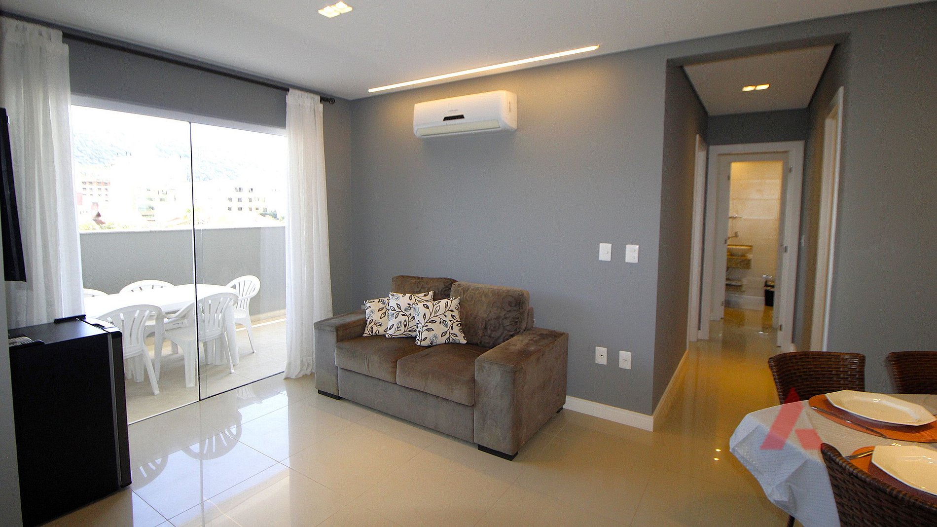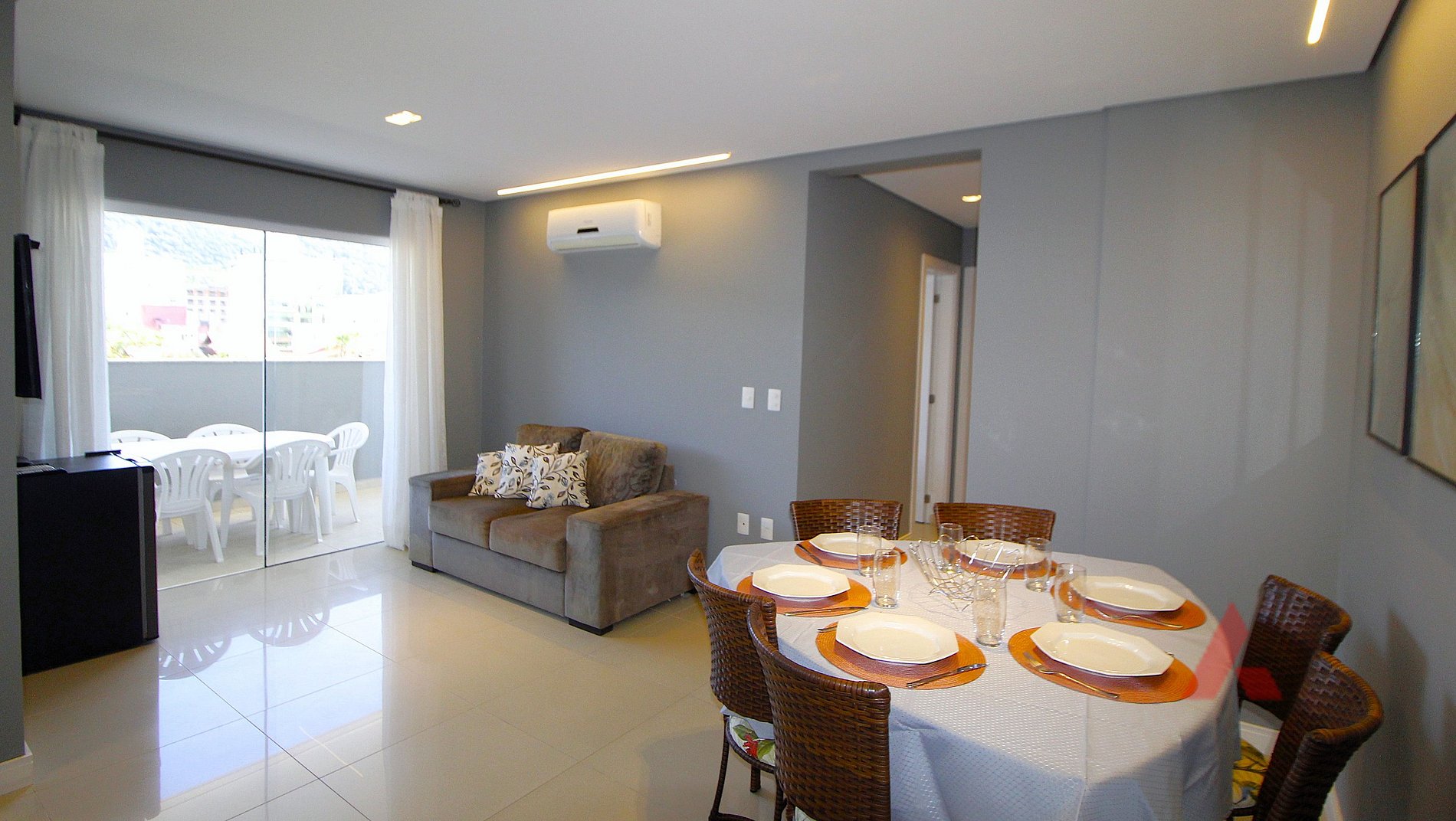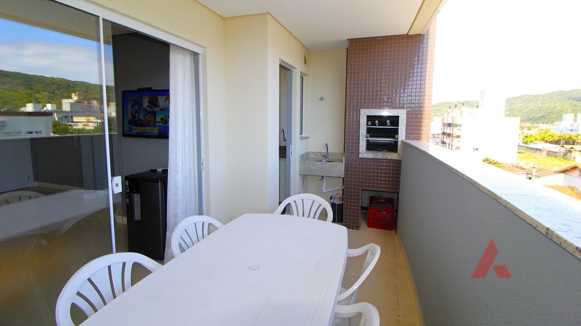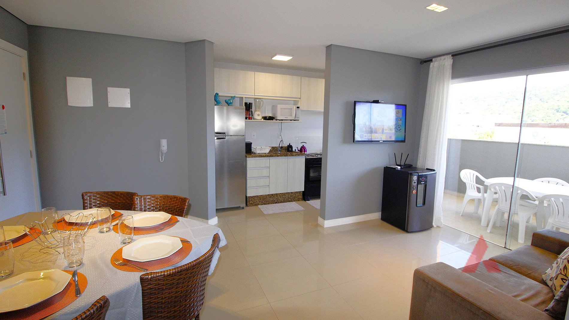 Excelente apartamento na Praia de Bombas, com dois dormitórios, sendo uma suíte com cama de casal box com ar condicionado, mais uma dormitório com duas camas de solteiro box com ar condicionado mais dois colchões, sala de estar com tv e jantar climatizada, cozinha completa com micro ondas, geladeira e demais utensílios domésticos, um banheiro social, sacada com churrasqueira,área de serviço com máquina de lavar roupas, uma vaga de garagem (vaga para carro pequeno) , com internet wi fi.