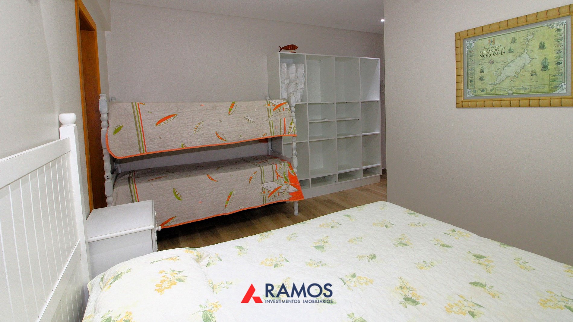 01 suíte com cama de casal e 01 beliche com ar condicionado
